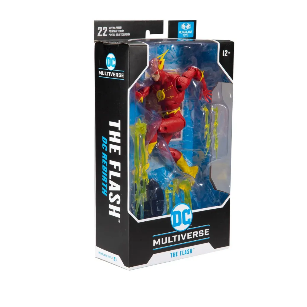 Aus dem DC Universum kommt diese detailreiche, bewegliche Modern Comic Flash Actionfigur. Sie ist ca. 18 cm groß und wird mit weiterem Zubehör und Base in einer bedruckten Fensterbox geliefert.