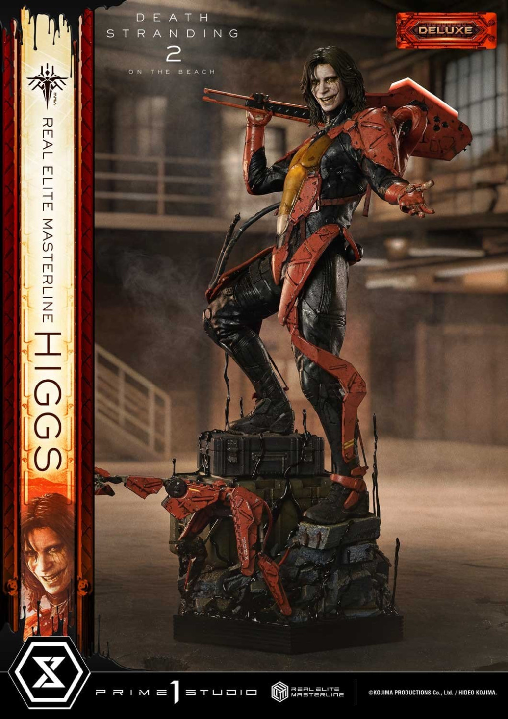 Teer quillt hervor, eine Melodie der Rache hallt wider. Der schicksalhafte Gegner kehrt in beeindruckendem Realismus im Maßstab 1:3 zurück – aus „DEATH STRANDING 2: ON THE BEACH“, wo Sam und seine Gefährten sich auf eine neue Reise begeben, um die Menschheit vor dem Aussterben zu bewahren. In diesem Action-Adventure, das erforscht, was jenseits menschlicher Verbundenheit liegt, reiht sich Higgs in die Real Elite Masterline ein. Nach einer Ewigkeit der Einsamkeit steht Higgs erneut vor Sam. Diese Statue erweckt seine Gestalt mit beeindruckendem Realismus zum Leben. Im Maßstab 1:3 gefertigt, um eine hochdetaillierte Modellierung und Bemalung zu erreichen, fängt sie jede Nuance dieses mächtigen Charakters ein, der von Kojima Productions unter der Leitung des Spieleschöpfers Hideo Kojima erschaffen wurde. Sein spöttischer Gesichtsausdruck wurde durch eine akribische Studie der Gesichtszüge von Troy Baker nachgebildet. Das ungleichmäßige weiße Make-up und die tränenartigen Streifen sind mit lebensechten Details lebhaft gemalt. Der Körper des Ghost Mech ist ebenso raffiniert gestaltet, von seinen charakteristischen Rottönen bis hin zum präzisen Grad der Verwitterung. LED-Einheiten beleuchten den Odradek und den Unterleib, wie im Spiel zu sehen. Der speziell entworfene Sockel, auf dem Teer hervorquillt, spiegelt die Welt des Spiels wider. Die gestapelte Fracht und eine dazugehörige Dog Mine sind ebenfalls aufwendig detailliert. Die Mimik verändert sich durch die rote Maske und den nach oben gerichteten Kopf. Die Battle Guitar hängt über seiner Schulter, und die Klinge entlang des Korpus leuchtet dank LED-Beleuchtung. Eine große Auswahl an zusätzlichen Teilen ist enthalten, um seinen Wahnsinn noch stärker zur Geltung zu bringen. Gestalte mit deiner Fantasie deine eigene Weltuntergangs-Kulisse. Ein schicksalhafter Gegner, der durch beeindruckenden Realismus zum Leben erweckt wurde. Bringe die Melodie der Rache in dein Sammlerzimmer.