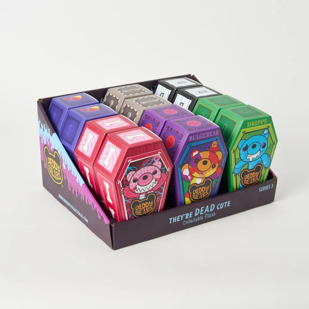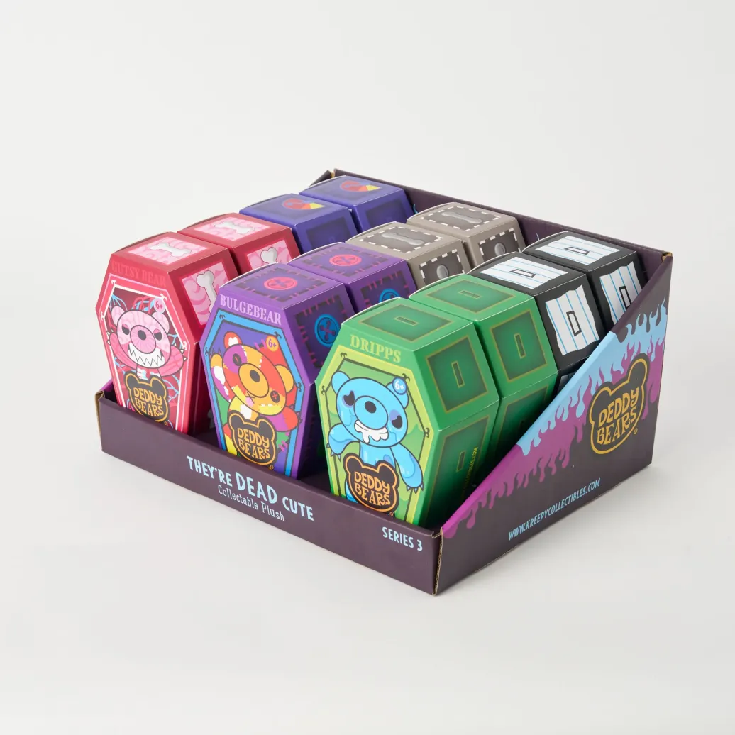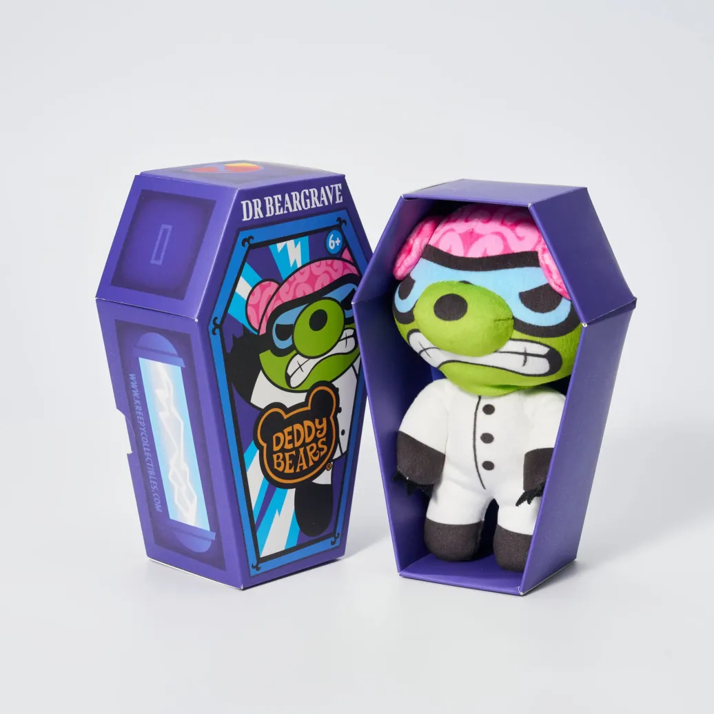 Diese niedlichen und zugleich mysteriös-gruseligen Deddybears suchen ein neues Zuhause! Jeder der 15cm großen Plüsch-Deddybear-Charaktere kommt in seinem eigenen Sarg und enthält eine individuelle "Sterbeurkunde", die seine einzigartige Charaktertiefe und Persönlichkeit darstellt. Perfekt zum Sammeln und Ausstellen. Lerne die sechs einzigartigen Charaktere kennen, die nur darauf warten, von dir gesammelt zu werden!