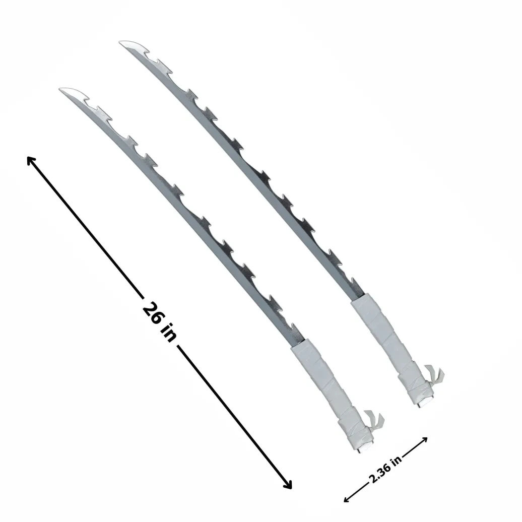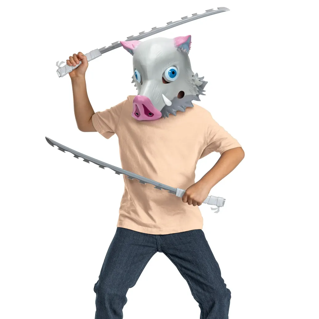 Zum Anime "Demon Slayer" kommt diese offiziell lizenzierte Nachbildung des Schwert Sets von Inosuke, gefertigt aus Kunststoff.