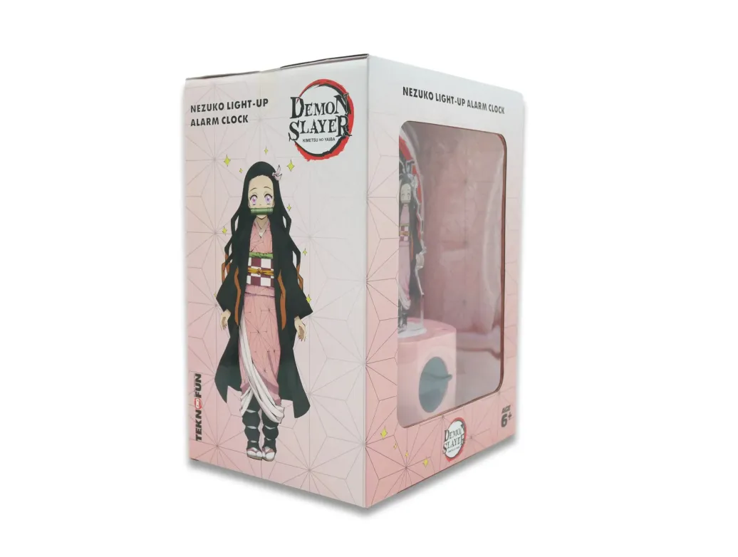 Beginne den Tag mit dem Lichtwecker von Nezuko. Der hintergrundbeleuchtete Bildschirm verfügt über eine digitale Anzeige von Uhrzeit, Datum, Raumtemperatur und programmierbarem Alarm. Er verfügt über 4 Positionen und 2 Beleuchtungsmodi (flackernd oder progressiv). Dieser kabellose Lichtwecker funktioniert mit 3 AAA-Batterien (nicht im Lieferumfang enthalten) oder einem USB/Micro-USB-Stromkabelschutz (im Lieferumfang enthalten). Dieses Produkt ist ein offizieller Demon Slayer.