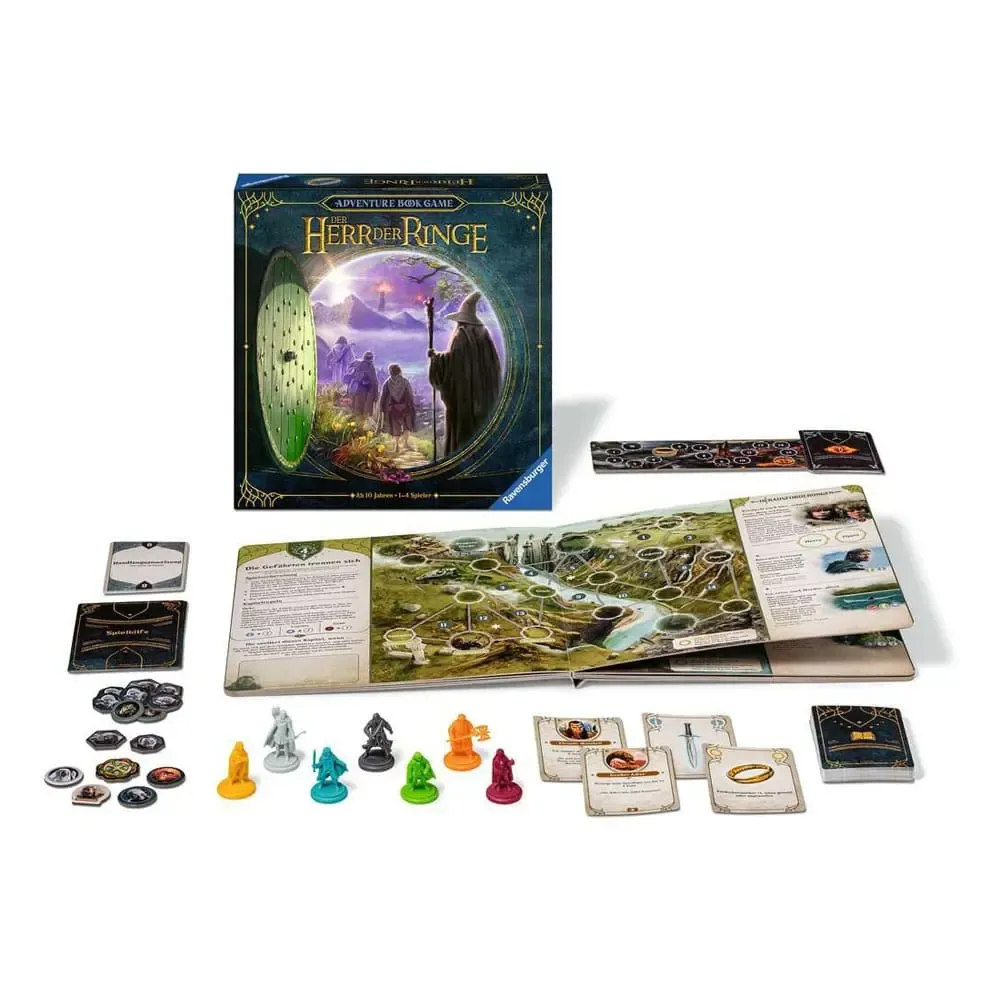 Bei diesem spannenden Adventure Book Game erleben die Spieler die epische Trilogie von "Der Herr der Ringe" in 8 Kapiteln: Saurons Schatten ist über Mittelerde eingefallen. Die Spieler reisen dabei ins schöne Bruchtal, überwinden die Minen von Moria und marschieren nach Isengart, um schließlich Mordor zu erreichen. Nur wenn alle gut zusammenarbeiten, wird es den Spielern gelingen, den Einen Ring in das flammende Herz des Schicksalsbergs zu werfen und ein für alle Mal zu vernichten.Bei diesem leicht zugänglichen Strategiespiel zur Trilogie "Der Herr der Ringe" erleben die Spieler ein Brettspiel auf außergewöhnliche Art und Weise! Statt einem Spielplan erwartet sie ein hochwertig illustriertes Buch, dass sie von Kapitel zu Kapitel durchspielen werden. Als Gefährten helfen alle Spieler zusammen, um den Einen Ring zu zerstören. Dabei kontrolliert keiner einen eigenen Charakter, sondern es arbeiten stets alle zusammen, um die vielen Herausforderungen zu meistern, indem beliebige Spielfiguren (und manchmal auch Marker) bewegt und Storykarten aus der Hand ablegt werden. Jedes Kapitel ist ein Spiel im Spiel, das man entweder gewinnen oder verlieren kann. Wenn ein Kapitel gewonnen wird, geht man zum nächsten über. Wurde ein Kapitel verloren, muss es erneut versucht werden.