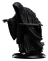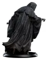 Statue eines Ringgeistes eine der schaurigsten Episoden aus „Die Gefährten“: den stillen Angriff im Gasthaus „Zum Tänzelnden Pony“. Unsere Künstler verleihen dieser kompakten Form eine außergewöhnliche erzählerische Klarheit. Der fließende, unnatürliche Faltenwurf des Mantels suggeriert Bewegung ohne Wind; die Haltung ist zwischen Heimlichkeit und Gewalt ausbalanciert. Feine texturale Details an Rüstung, Wickeln und verwitterter Klinge belohnen eine genaue Betrachtung, während die längliche Silhouette und die zurückhaltende Komposition die unmenschliche Bedrohung des Ringgeistes bewahren. Dieses Sammlerstück passt nahtlos zu anderen Ringgeist-Stücken, verankert Dioramen, die den Mächten des Bösen gewidmet sind, oder steht allein als Symbol der Neun auf dem Höhepunkt ihres Schreckens.