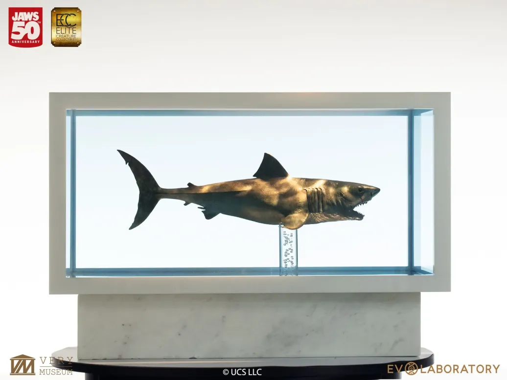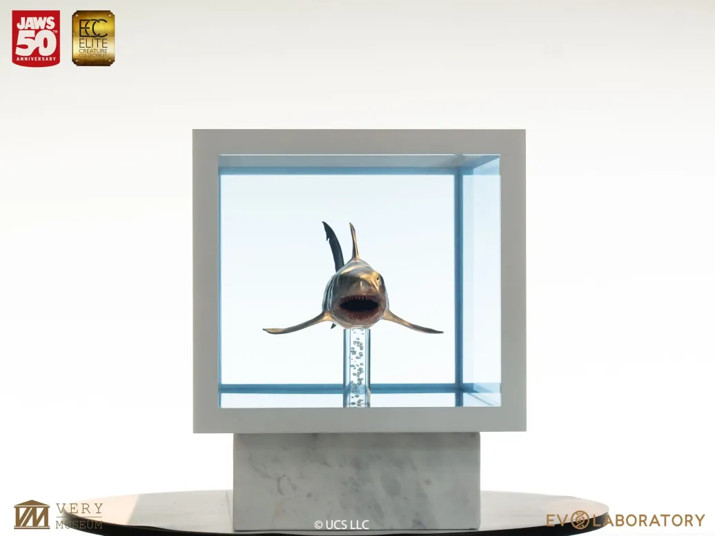 Inspiriert von der ikonischen Kunst der 1990er Jahre, insbesondere Damien Hirsts "Famous Shark", präsentiert Elite Creature Collectibles einen Hai aus Bronze in Museumsqualität. Dieses Kunstwerk zeigt einen sorgfältig geformten Bronzhai in einer maßgefertigten Acrylvitrine. Unter der eingebauten Beleuchtung von oben erzeugt die Installation eine beeindruckende Illusion - als wäre das Lebewesen gefangen und in seinem Becken konserviert worden.