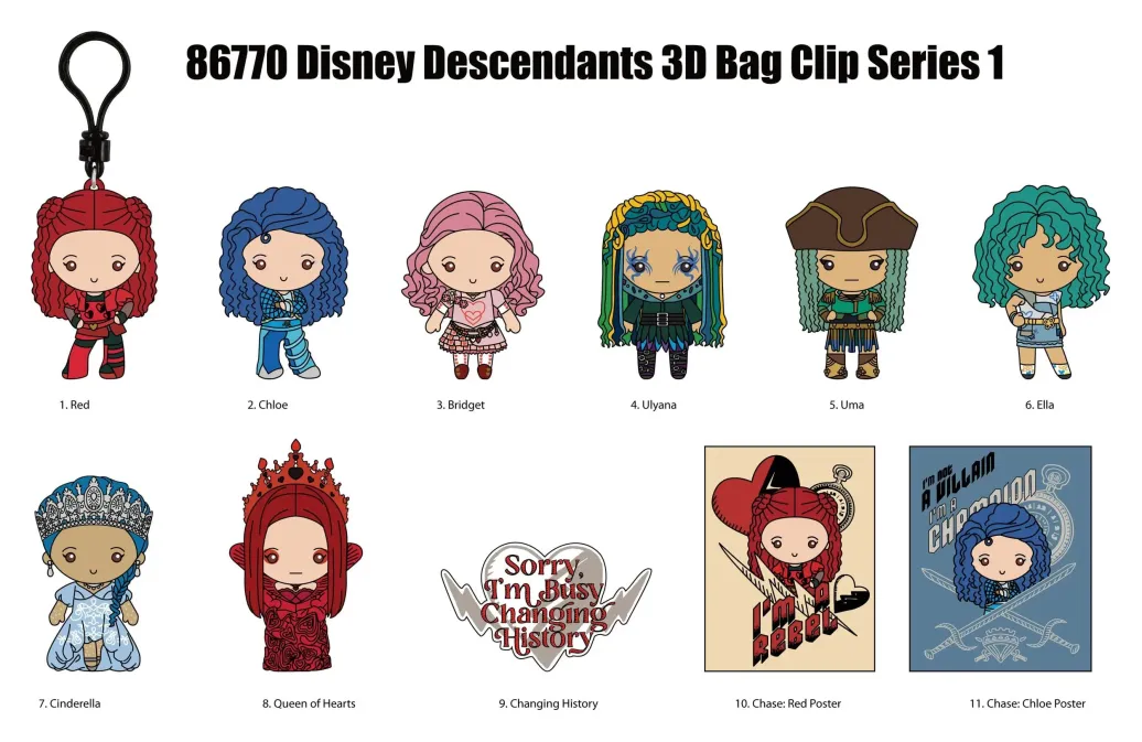 Display mit 24 Blind Bags mit offiziell lizenzierten, sammelbaren "Descendants" Taschenanhängern von Monogram.