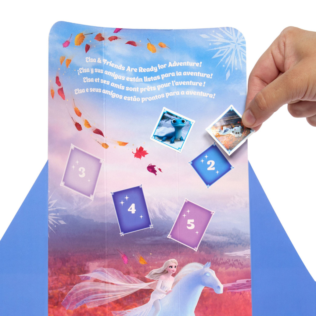 Das Auspacken der Elsa-Puppe aus Disneys Die Eiskönigin hat mit diesem Disney Die Eiskönigin Spin & Reveal etwas Magisches an sich! Kinder können zuerst die Schneeflocke öffnen, um darin eine thematisch passende Szene zum Spielen mit geheimnisvollen Silhouetten zu entdecken. Danach können sie die Verpackung drehen, um 5 Überraschungstüten zum Vorschein zu bringen, in denen sich 5 Accessoires und 5 Sticker verbergen. Zum Schluss können sie eine Elsa-Modepuppe in einem vom Film inspirierten Outfit enthüllen! Kinder können auch die Szene zum Spielen dekorieren und diese als Hintergrund nutzen, um sich Geschichten auszudenken. Die Puppe kann nicht von allein stehen.