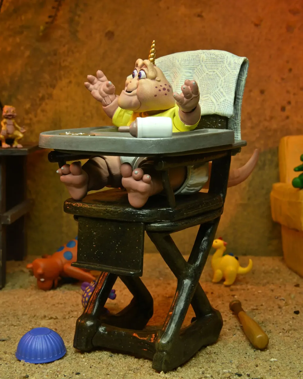 Aus NECAs Figuren-Reihe kommt diese coole Actionfigur aus des Serienklassiker "Dinosaurs". Sie ist ca. 18 cm groß und wird mit jeder Menge Zubehör und Austauschteilen in einer Fensterbox geliefert.