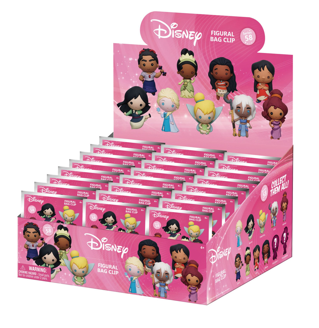 Display mit 24 Blind Bags mit je einem offiziell lizenzierten Taschenanhänger aus PVC.