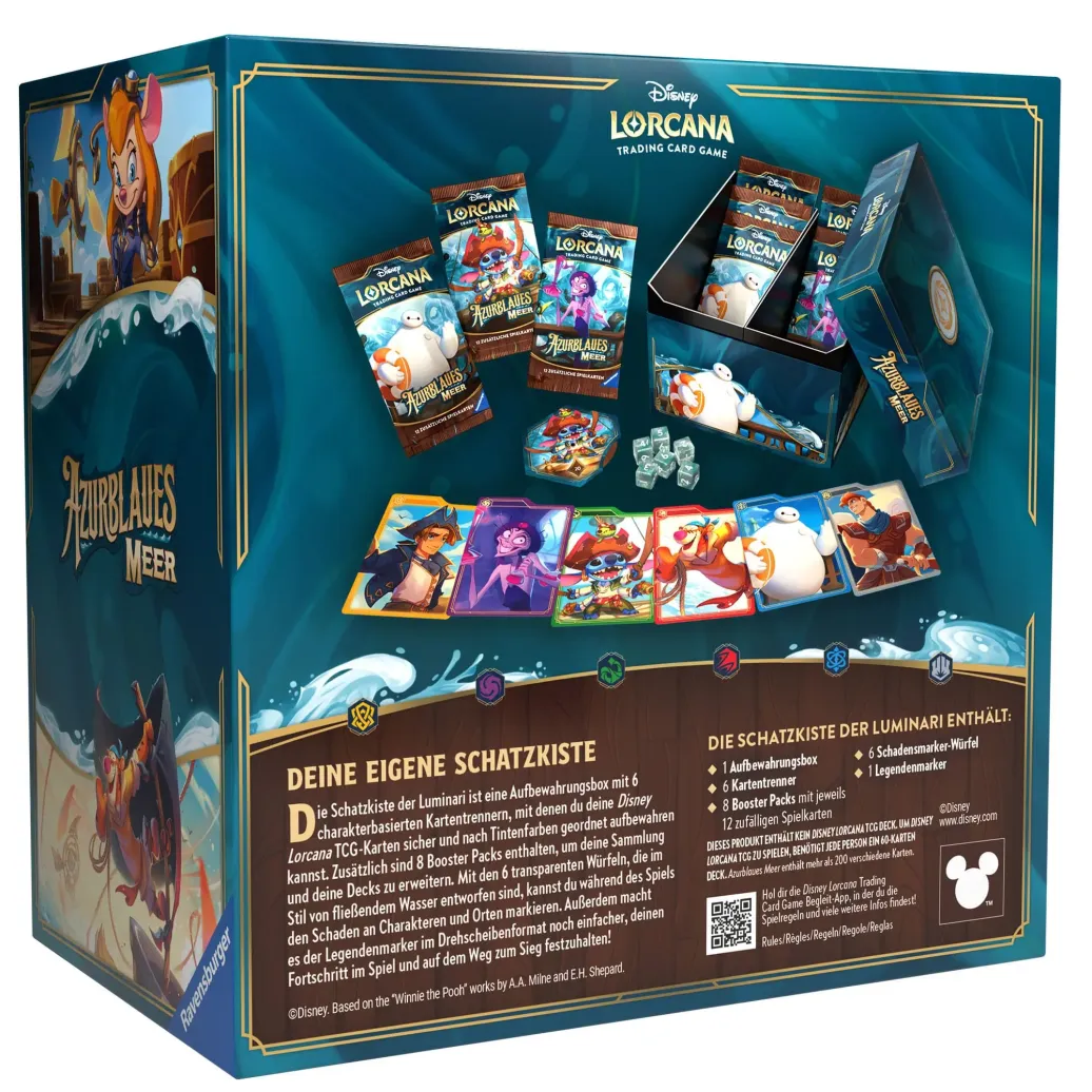 Gefüllt mit Schätzen, die eines Piraten würdig wären, beinhaltet diese Aufbewahrungsbox 8 Azurblaues Meer Booster Packs, 6 Kartentrenner und 1 Legendenmarker. Das X markiert die Stelle und die 6 glitzernden Würfel markieren den Schaden auf deinen Glimmern.