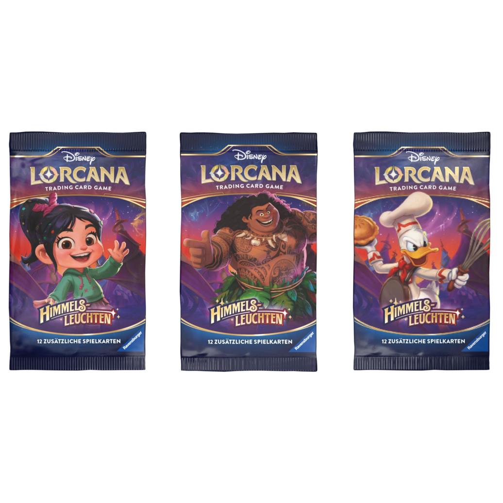 Im Gegensatz zu Starter Decks enthalten Booster Packs zwölf zufällige Karten aus Disney Lorcana. Verwende die Karten aus den Booster Packs, um Starter Decks mit neuen Karten aufzuwerten oder deine eigenen Decks zu bauen.