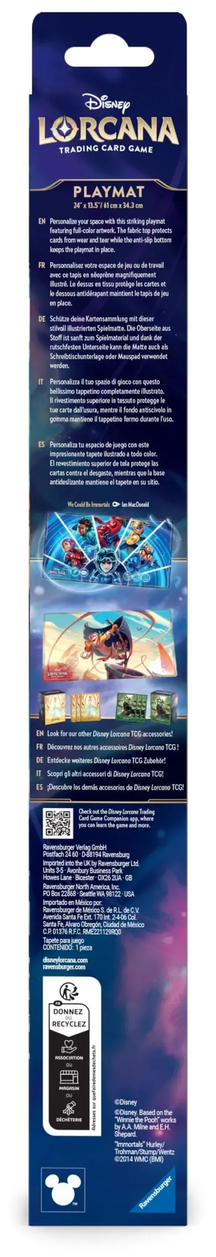 Jede Spielmatte ist mit eindrucksvollen Motiven von berühmten Disney Figuren versehen. Die Oberseite aus Stoff ist sanft zum Spielmaterial und dank der rutschfesten Unterseite kann die Matte auch als Schreibtischunterlage oder Mauspad verwendet werden.
