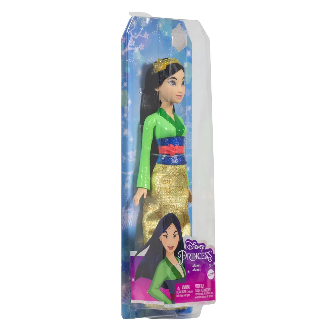 Diese Mulan-Puppe ist von der mutigen und willensstarken Prinzessin des gleichnamigen Disney-Filmklassikers inspiriert! Diese bewegliche Modepuppe trägt ein glitzerndes Outfit und besitzt Accessoires wie Schuhe und ein Diadem. Mit ihrem Look aus dem Film ist die Mulan-Puppe für jedes Abenteuer zu haben! Die Puppe kann nicht von alleine stehen. Abweichungen in Farbe und Gestaltung vorbehalten.