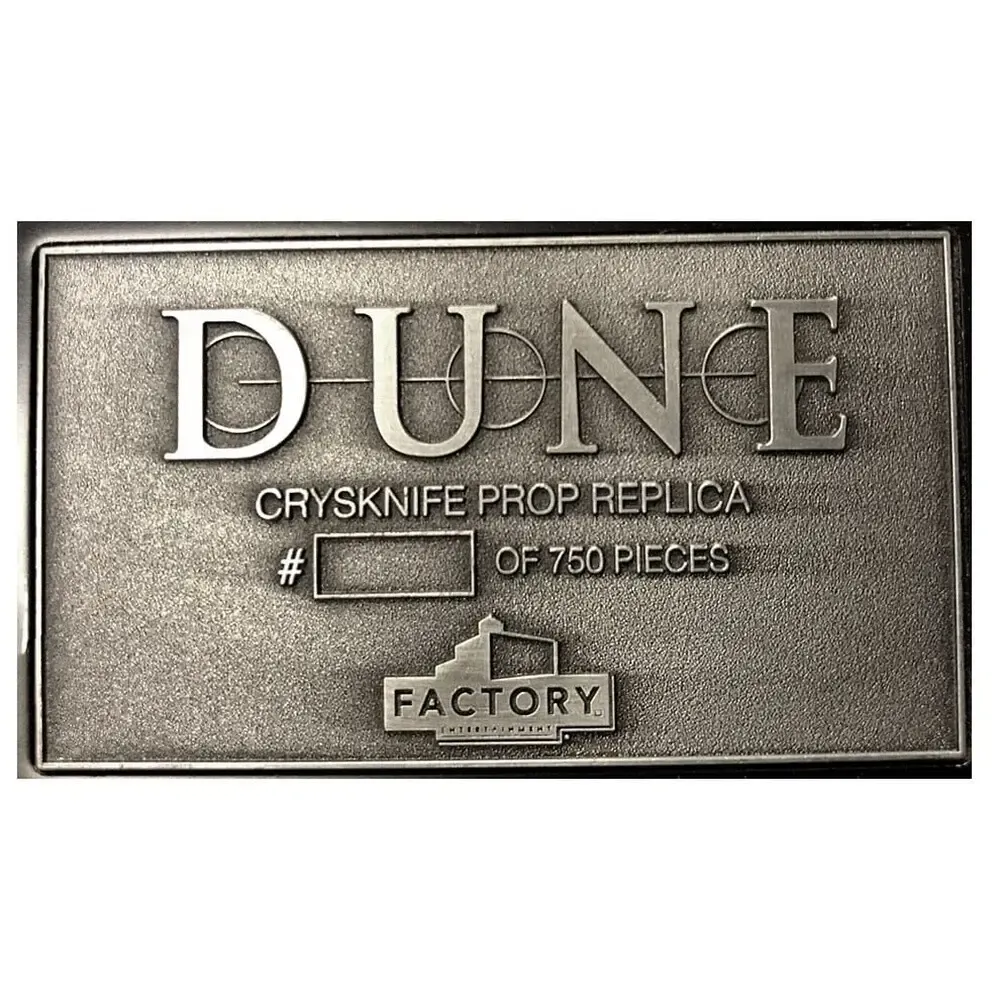 Zum Blockbuster "Dune" kommt diese originalgetreue Nachbildung. Die Replik ist ca. 25 cm lang und wird inkl. Echtheitszertifikat in einer bedruckten Box geliefert.