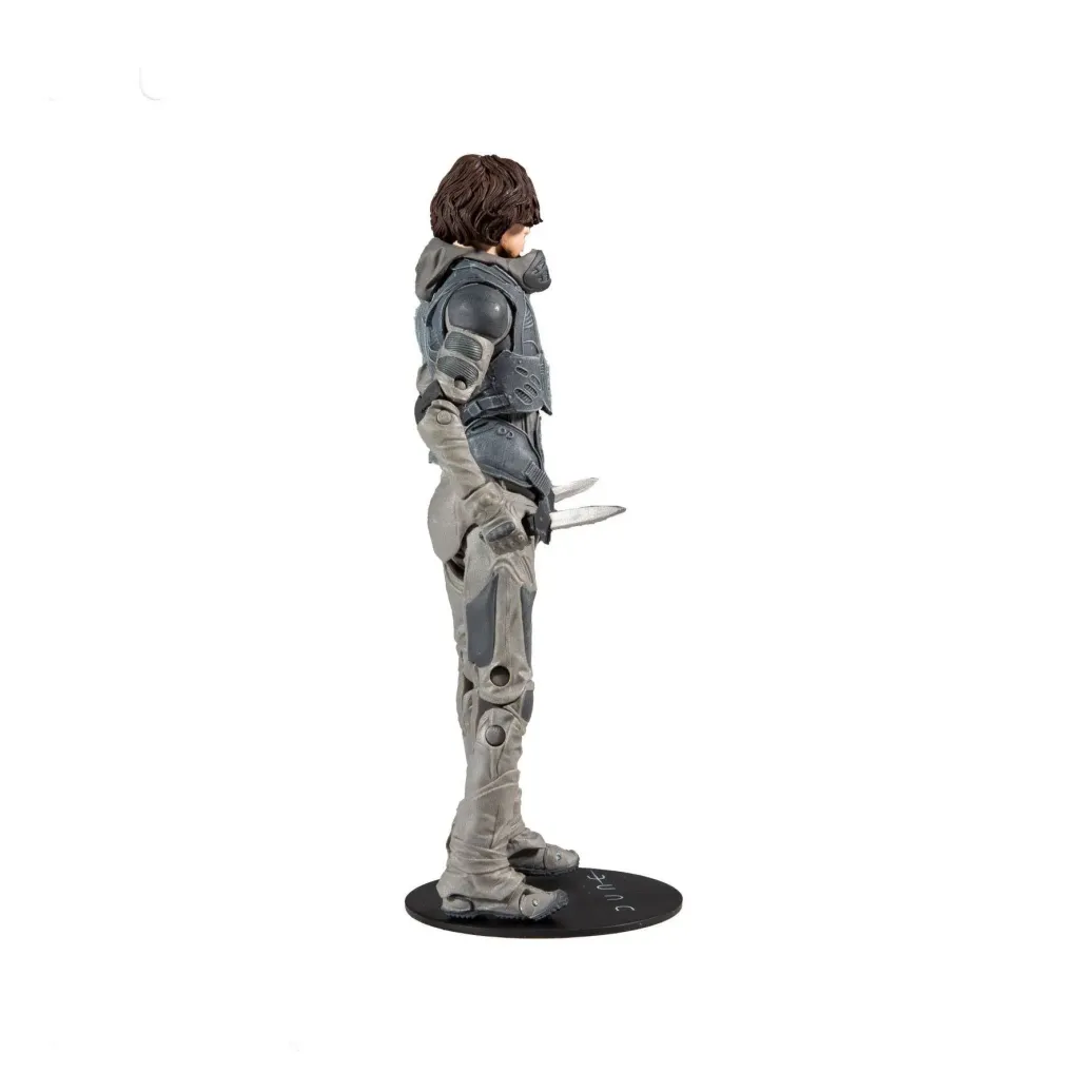 Aus dem Film "Dune " kommt diese detailreiche, bewegliche Actionfigur. Sie ist ca. 18 cm groß und wird mit weiterem Zubehör, Base und Sammelkarte in einer bedruckten Fensterbox geliefert.