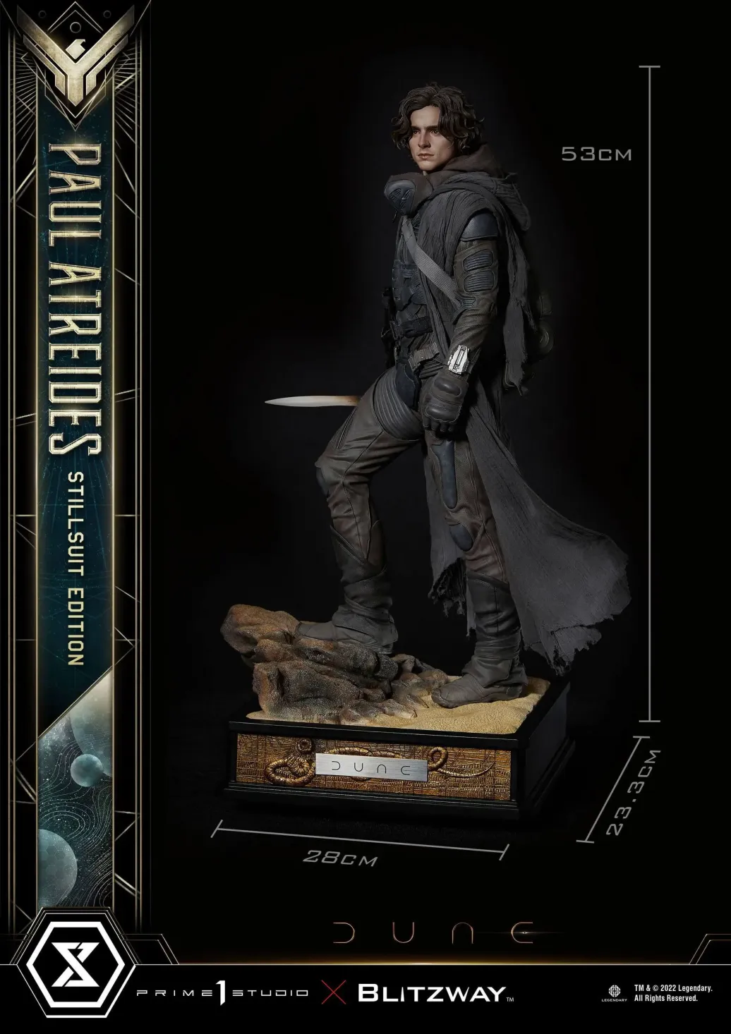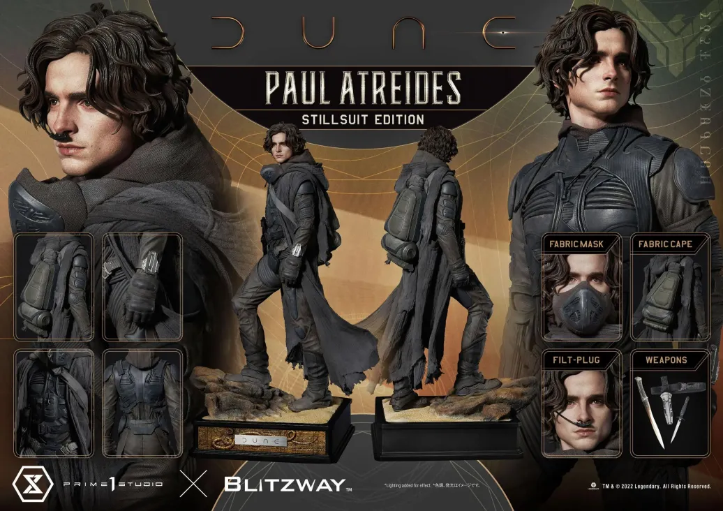 Zum mega-erfolgreichen Film Dune kommt diese fantastische Statue. Sie ist ca. 53 x 28 x 23 cm groß und wurde aus hochwertigem Polystone gefertigt.