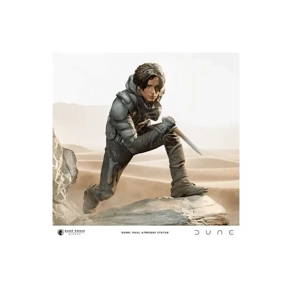 Dark Horse Direct ist stolz, in Zusammenarbeit mit Legendary Entertainment, die Dune: Paul Atreides Statue! Paul ist bereit zum Handeln und schwingt sein heiliges Crysknife, bereit, seine Ehre und sein Volk zu verteidigen. Basierend auf dem mit Spannung erwarteten neuen Film des kultigen Science-Fiction-Epos Dune, wird diese Statue Sie bereit machen, an der Seite der Fremen zu kämpfen, denn "nur gemeinsam haben wir eine Chance".