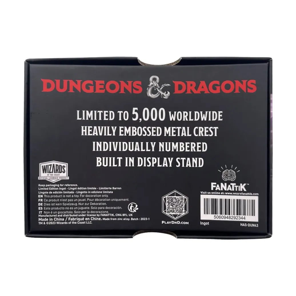 Offiziell lizenzierter Metallbarren aus Metall. Das Sammlerstück ist auf 5000 Stück limitiert und nummeriert. Er ist 5 x 7 cm groß und wird inklusive einem Ständer in einer Fensterbox geliefert.