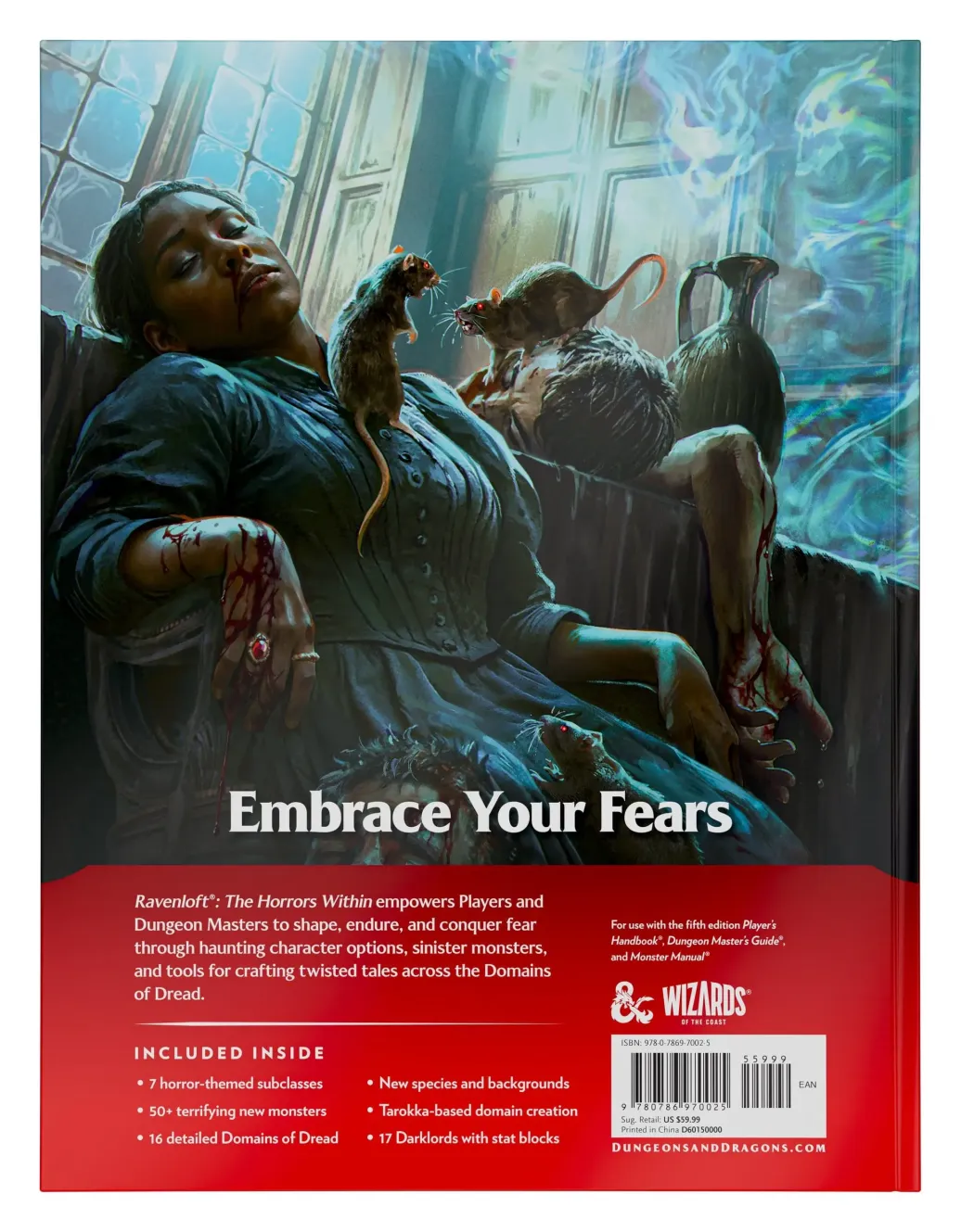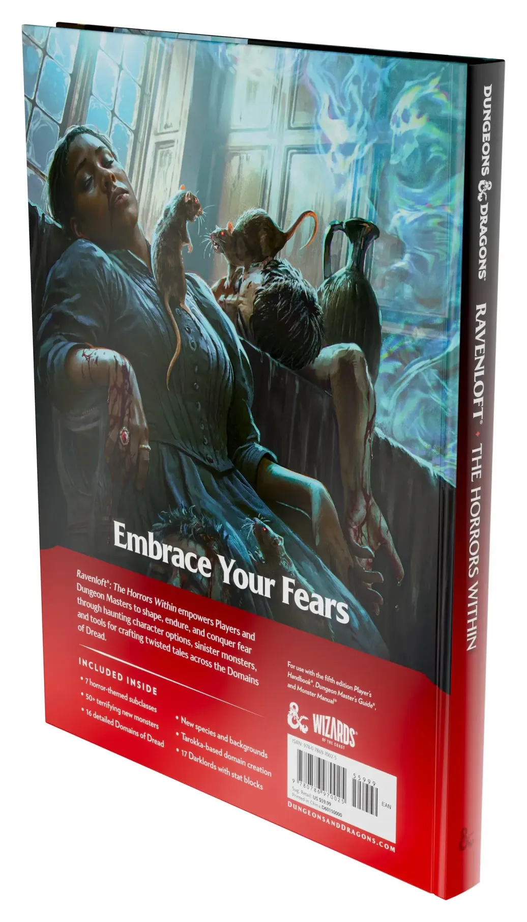 Bringen Sie mit Ravenloft: The Horrors Within, der ultimativen Horror-Erweiterung, Angst an den Tisch. Als Dungeon Master sind Sie der Drahtzieher, der die Fäden zieht und mehrere Horror-Genres, schattenhafte Domänen des Schreckens, bösartige Dunkle Lords und groteske Monstrositäten als Instrumente des Schreckens in Ihrer Terrorkampagne einsetzt. In diesem heimgesuchten Gewölbe werden Ihre Spieler nekrotische neue Unterklassen, eindringliche Hintergründe und übernatürliche Flüche entdecken. Was auch immer geschieht, nur eines ist sicher: Dies ist ein Albtraum, aus dem Ihre Gruppe nicht aufwachen kann . . . und Sie haben die Kontrolle.
