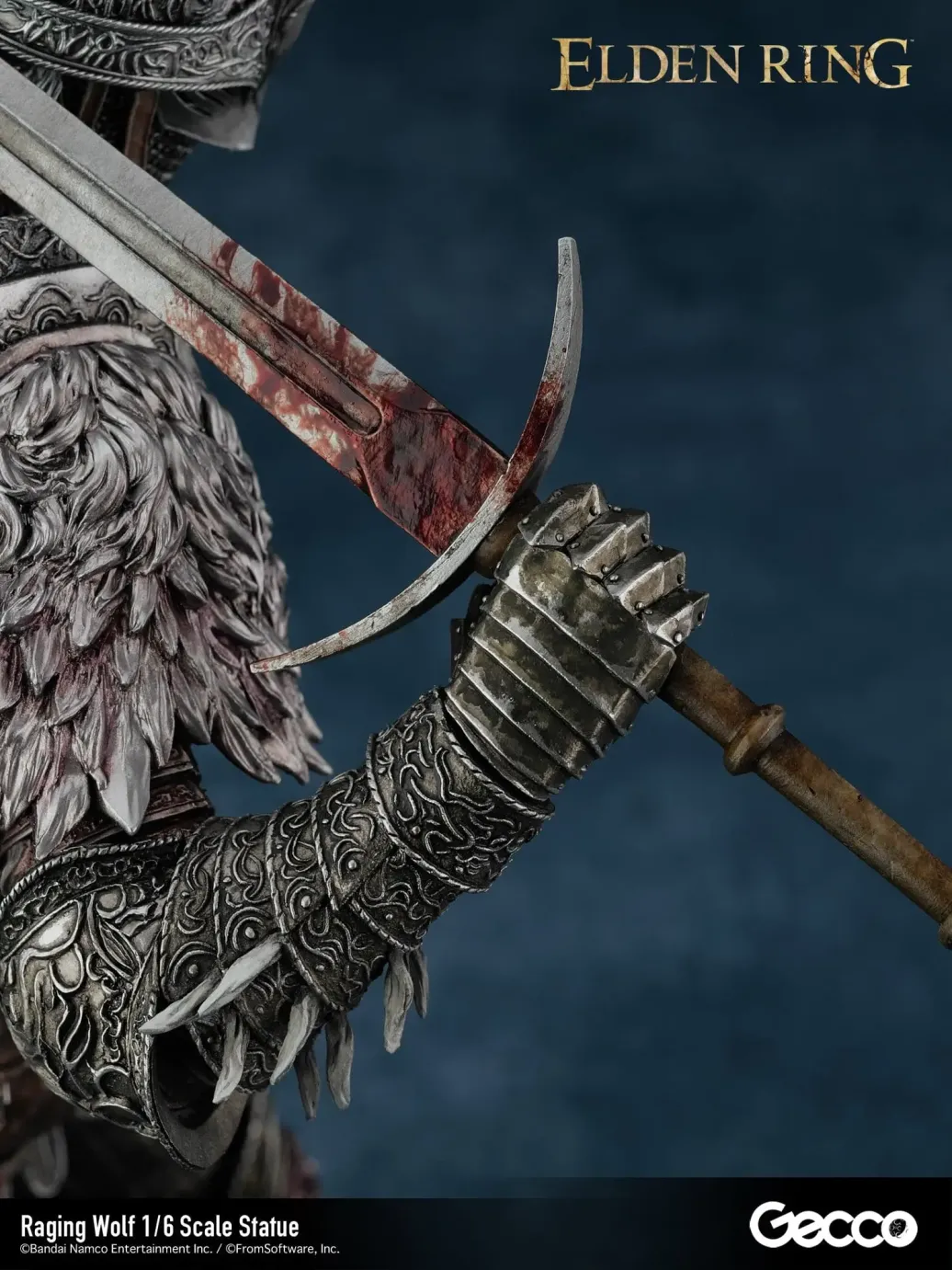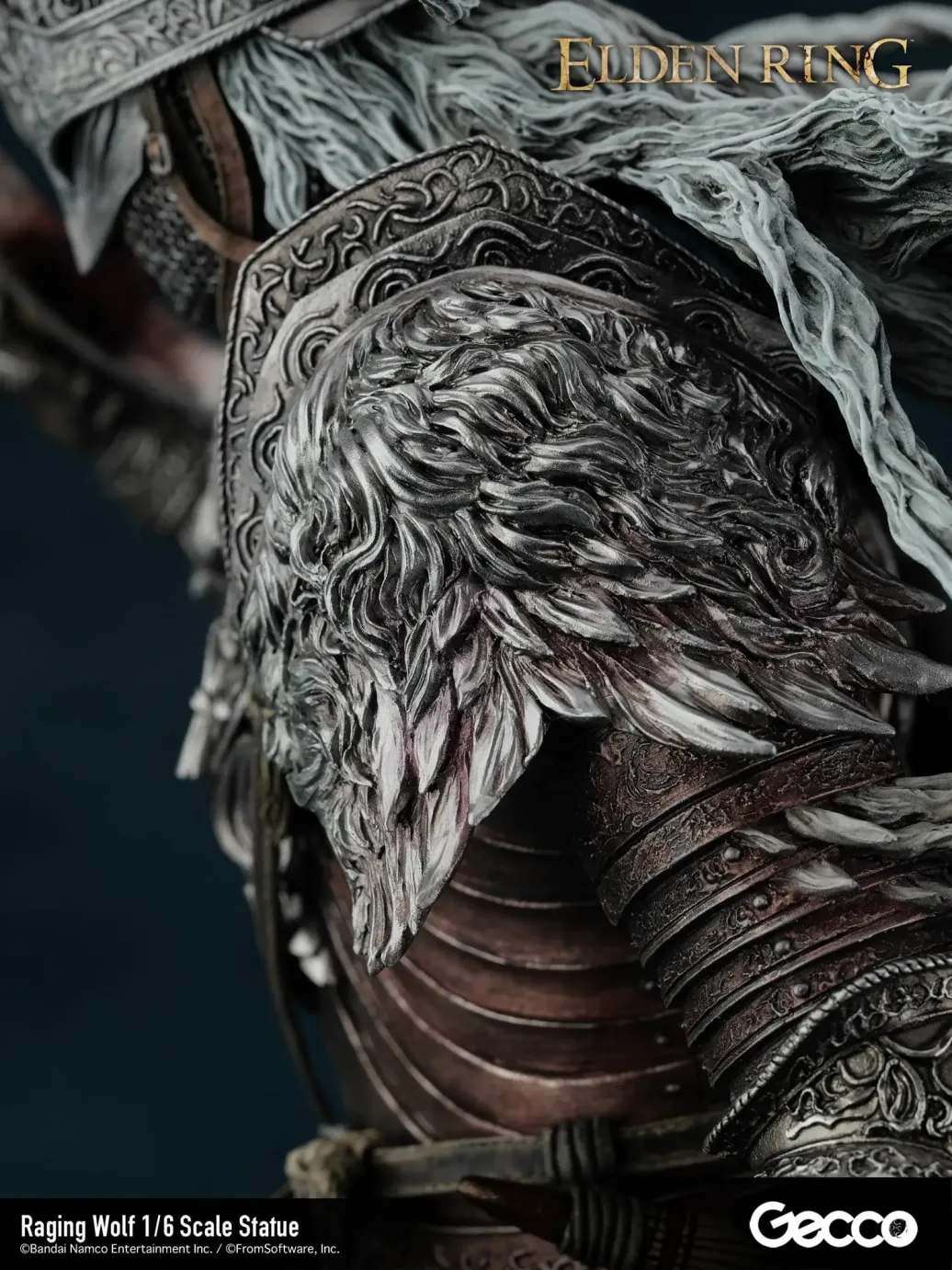 Aus dem Action-Rollenspiel „ELDEN RING“ wird der Befleckte, der mit dem ikonischen Rüstungsset des Rasenden Wolfs ausgestattet ist, als Statue im Maßstab 1:6 nachgebildet. Diese Statue fängt den Befleckten ein, wie er durch die Wildnis wandert, sein Haar im starken Wind weht, während er eine einschüchternde Präsenz ausstrahlt, die alle warnt, Abstand zu halten. Unter der vollständigen Aufsicht von FromSoftware wurde jedes Detail mit fachmännischer Bildhauerei und Bemalung originalgetreu nachgebildet: von der harten Textur der Metallrüstung und dem realistischen Verschleiß des Leders bis hin zu den Narben und Flecken, die die Geschichte vieler erbitterter Schlachten erzählen. Die Basis ist vom Steinpflaster inspiriert, das zur Burg Sturmschleier führt, was dieses Stück zu einem Werk macht, das die atmosphärische Essenz der Zwischenlande perfekt einfängt.