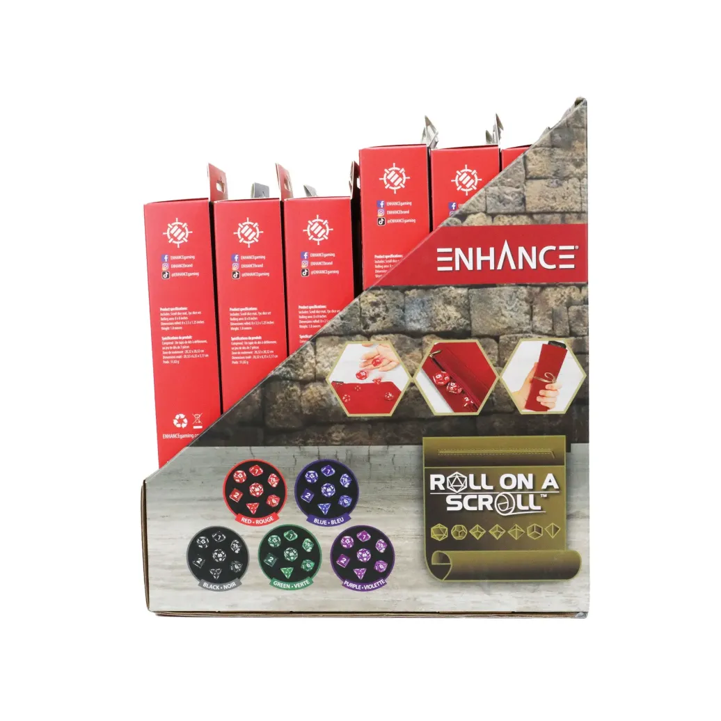 ENHANCE Tabletop Roll on a Scroll Würfelrolle und 7er Set Acrylwürfel, dass Sortiment enthält: