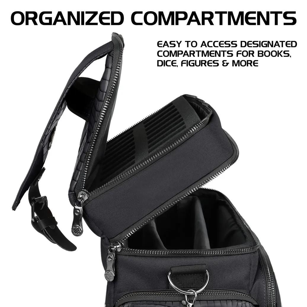 - Verschiedene Fächer für Aufbewahrung, passend für Bücher wie D&D, Shadowrun, Pathfinder und mehr.