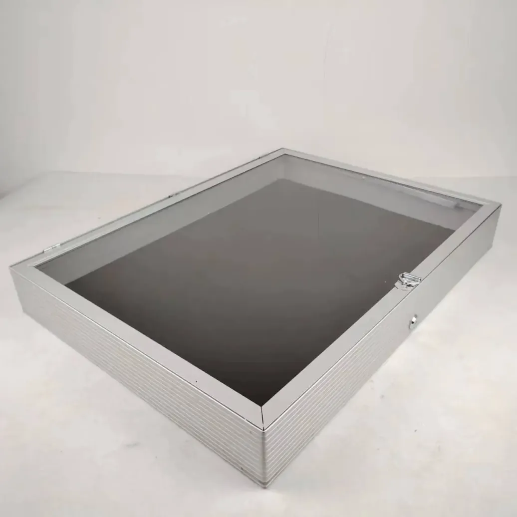 Bewahren Sie Ihre Wertsachen sicher und stilvoll auf mit der abschließbaren Aluminiumvitrine von EVORETRO. Mit einem robusten Aluminiumrahmen, einem transparenten Acryldeckel und einem sicheren Verschlusssystem ist diese elegante Vitrine perfekt für die professionelle Aufbewahrung von Sammlerstücken, Karten oder Schmuck.