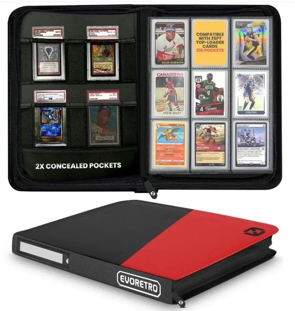 Der Shield+ Binder von EVORETRO schützt Ihre Sammlung. Fasst 216 Karten, hat 4 Zubehörtaschen, ein Tracker-Fach, zugeschnitten auf Toploader-Karten. Wasserdicht mit Reißverschluss, Trageriemen und Namensschild zur einfachen Identifizierung auf Reisen oder im Handel.