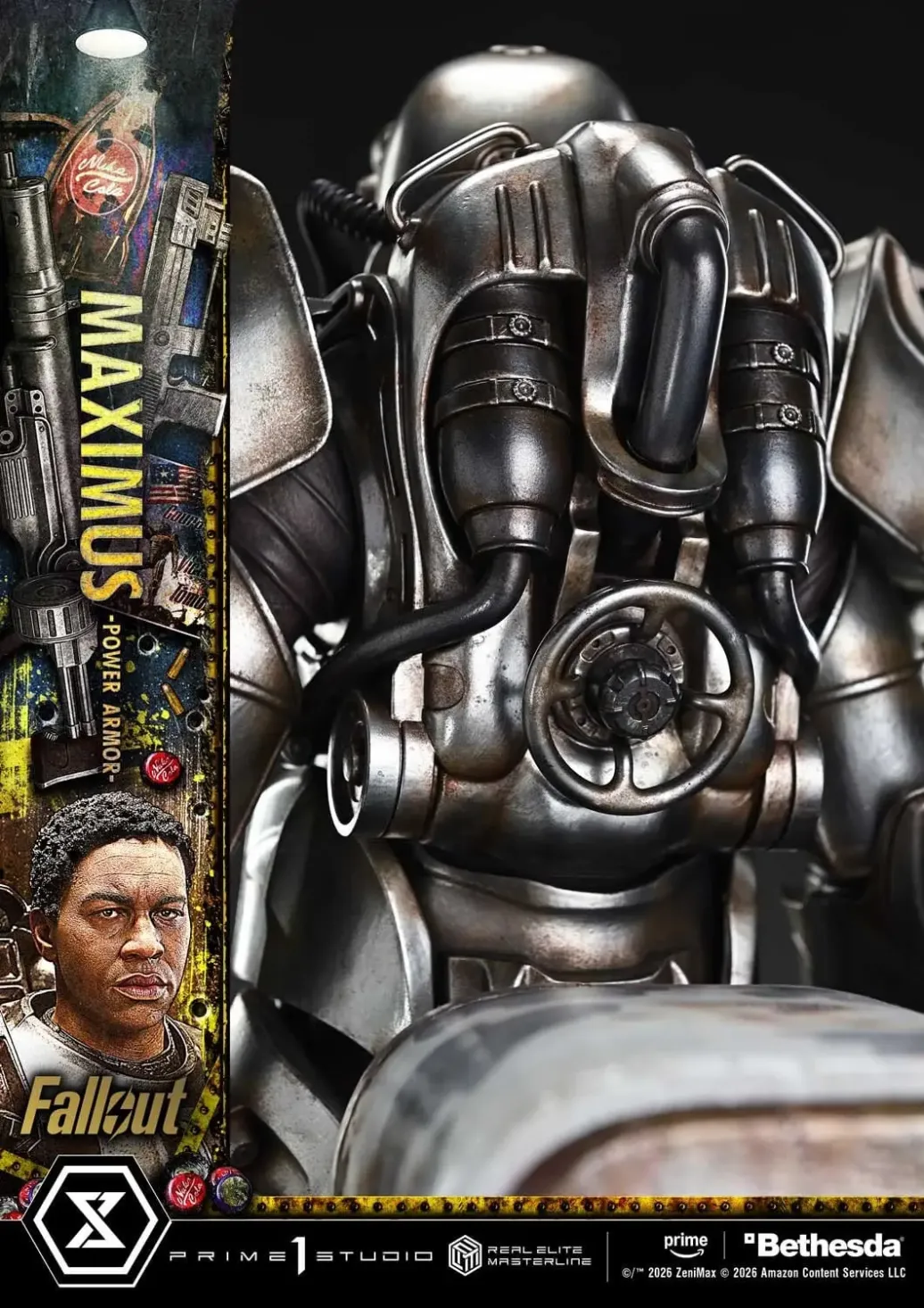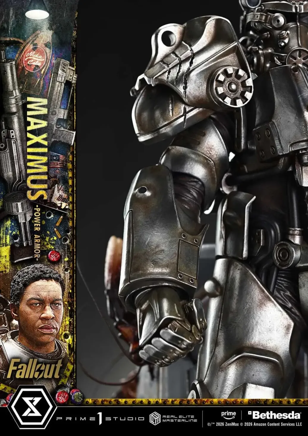 „Es ist die Pflicht eines Ritters, diese gefallene Welt zu verbessern.“ Eine realistische Darstellung eines Jugendlichen, der an Idealen festhält – verkörpert durch den T-60. „Fallout“ bleibt dem Ton der Originalspiele treu und entfaltet zugleich eine eigene Geschichte, die das Publikum weltweit mit ihrem postapokalyptischen Drama in ihren Bann zieht. Aus dieser Welt stößt die Maximus-Power-Rüstung zur Real Elite Masterline-Serie hinzu. Ein junger Soldat, der an den Idealen der Bruderschaft des Stahls festhält, um eine dunkle Vergangenheit auszulöschen. Einer der moralisch komplexen Protagonisten der Geschichte wird in der Power-Rüstung zum Leben erweckt, die er zum ersten Mal trug. Die imposante Gestalt und Pose des T-60-Modells, sein LED-beleuchteter Scheinwerfer und die symbolischen drei Kratzspuren wurden auf der Grundlage einer Analyse der Requisiten aus dem Film akribisch nachgebildet. Jedes Detail wurde originalgetreu im Maßstab 1:4 wiedergegeben. Ein gebleichter Deathclaw-Schädel. Krabbelnde Radroaches. Ein Milchautomat, der Kindheitserinnerungen weckt. Der speziell entworfene Sockel erinnert an die Ödlandlandschaft, wie sie durch Maximus’ Augen gesehen wird. Jedes Element ist so gestaltet, dass es still seinen Teil der Geschichte erzählt. Nach dem Ghul und Lucy MacLean wird nun die Maximus-Power-Rüstung mit derselben kompromisslosen Detailtreue zum Leben erweckt. Erleben Sie die realistische Darstellung eines Jugendlichen, der an seinen Idealen festhält, in Ihrer Sammlung.