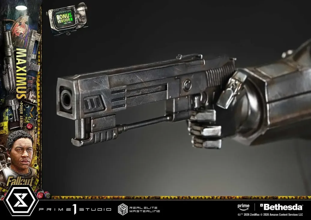 „Es ist die Pflicht eines Ritters, diese gefallene Welt zu verbessern.“ Eine realistische Darstellung eines Jugendlichen, der an Idealen festhält, durch den T-60. „Fallout“ bleibt dem Ton der Originalspiele treu und entfaltet gleichzeitig eine eigene Geschichte, die das Publikum weltweit mit ihrem postapokalyptischen Drama in ihren Bann zieht. Aus dieser Welt stößt die Maximus-Power-Rüstung zur Real Elite Masterline-Serie. Ein junger Soldat, der an den Idealen der Bruderschaft des Stahls festhält, um eine dunkle Vergangenheit auszulöschen. Einer der moralisch komplexen Protagonisten der Geschichte wird in der Power-Rüstung zum Leben erweckt, die er zum ersten Mal trug. Die imposante Gestalt und Pose des T-60-Modells, sein LED-beleuchteter Scheinwerfer und die symbolischen drei Klauenspuren wurden auf der Grundlage einer Analyse der Requisiten aus dem Film akribisch nachgebildet. Jedes Detail wurde originalgetreu im Maßstab 1:4 wiedergegeben. Ein gebleichter Deathclaw-Schädel. Krabbelnde Radroaches. Ein Milchautomat, der Kindheitserinnerungen weckt. Der speziell entworfene Sockel erinnert an die Ödlandlandschaft, wie sie durch Maximus’ Augen gesehen wird. Jedes Element ist so gestaltet, dass es still seinen Teil der Geschichte erzählt. Zusätzliche Teile sind enthalten, um die Präsentation zu verändern. Der Kopf ohne Helm zeigt einen subtil wachsamen Ausdruck, wobei Falten und Narben bis ins kleinste Detail modelliert sind. Das Sturmgewehr, das mit Silbertönen unterschiedlicher Intensität überzogen ist, vermittelt ein Gefühl von gewaltiger Feuerkraft. Zusammen mit dem Kopfständer bieten diese Optionen den wahren Spaß an der Individualisierung. Diese Bonusausgabe enthält einen zusätzlichen rechten Arm, der eine T-60-Pistole hält. Ein besonderes Detail, das unvergessliche Szenen wieder aufleben lässt, darunter die Konfrontationen mit dem Ghul. Nach dem Ghul und Lucy MacLean wird nun auch die Maximus-Power-Rüstung mit dem gleichen kompromisslosen Detailgrad zum Leben erweckt. Erleben Sie die realistische Darstellung eines an seinen Idealen festhaltenden Jugendlichen in Ihrer Sammlung.