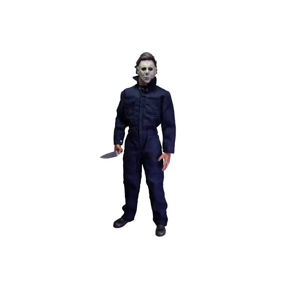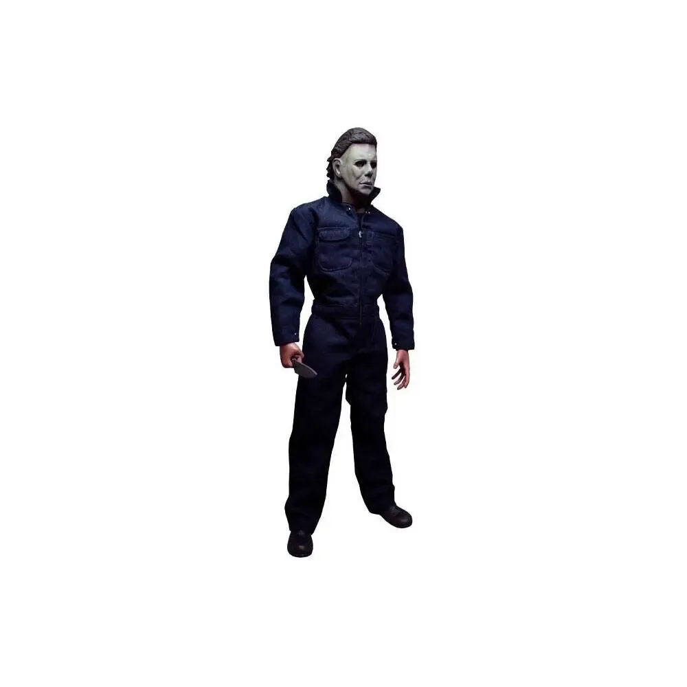 Zum 1978er Horrorfilm Halloween kommt diese detailreiche Michael Myers Actionfigur. Sie ist ca. 30 cm groß, trägt echte Stoffkleidung und wird mit Zubehör in einer Fensterbox geliefert.