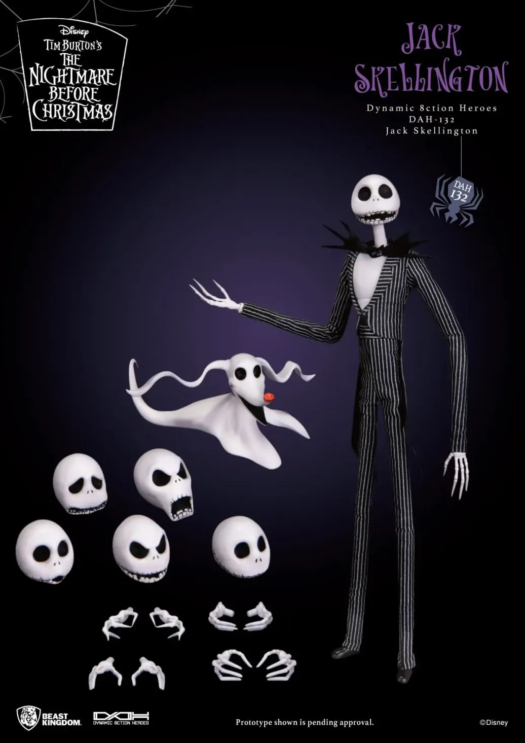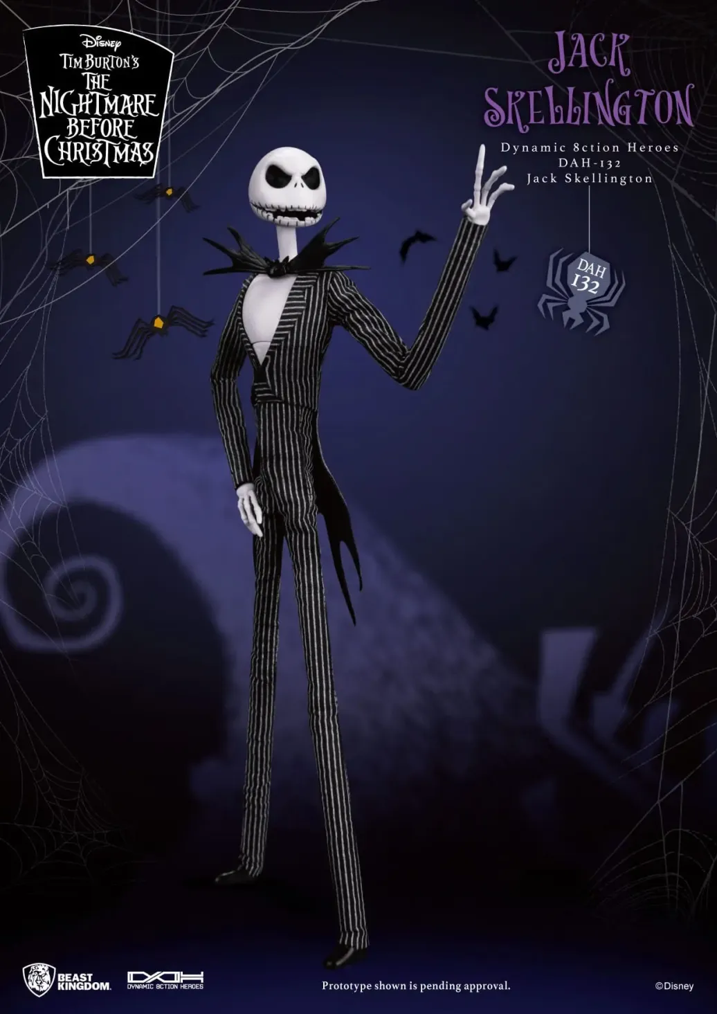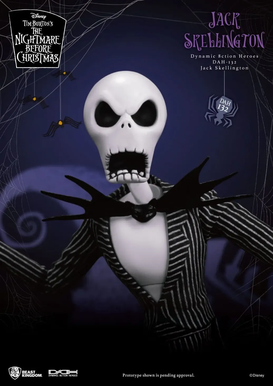 Zum Film Nightmare before Christmas kommt diese großartige Actionfigur im Maßstab 1:9 aus der "Dynamic 8ction Heroes" Serie von Beast Kingdom Toys. Sie ist ca. 21 cm groß und wird mit weiteren Austausch- und Zubehörteilen in einer bedruckten Box geliefert.