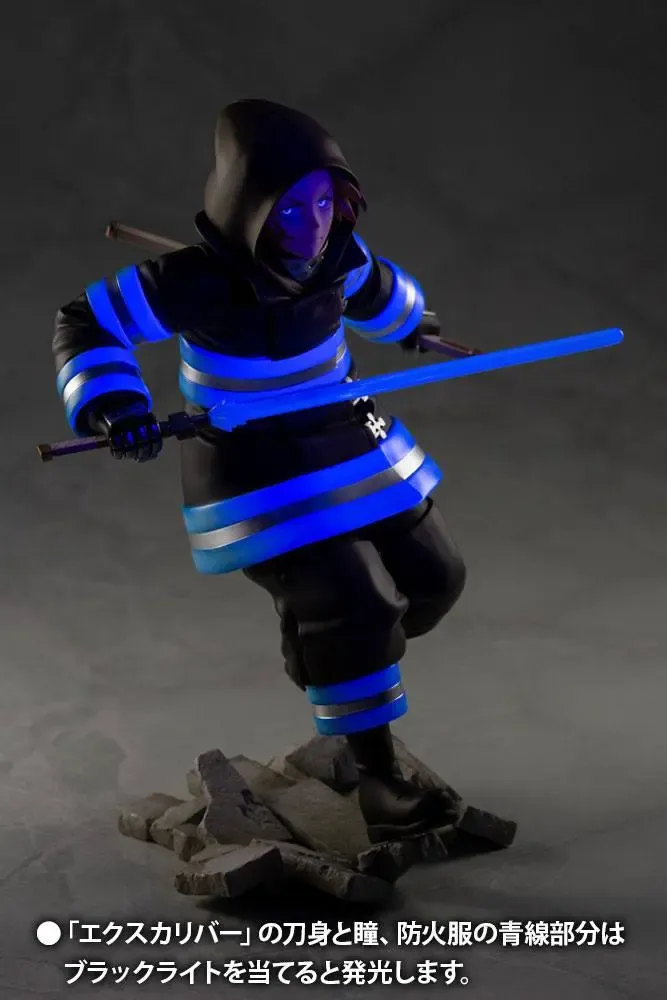 Aus der ARTFXJ Reihe von Kotobukiya kommt diese aufregende Statue aus dem Manga Fire Force. Die detailreiche PVC Statue im Maßstab 1/8 wurde mit einer speziellen Schwarzlicht-Bemalung versehen. Sie ist ca. 20 cm gross und wird in einer Fensterbox geliefert.