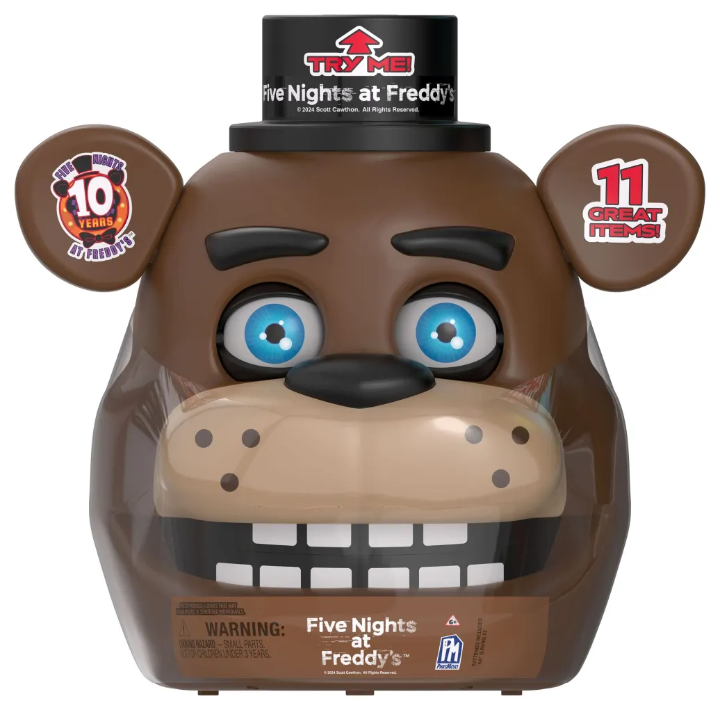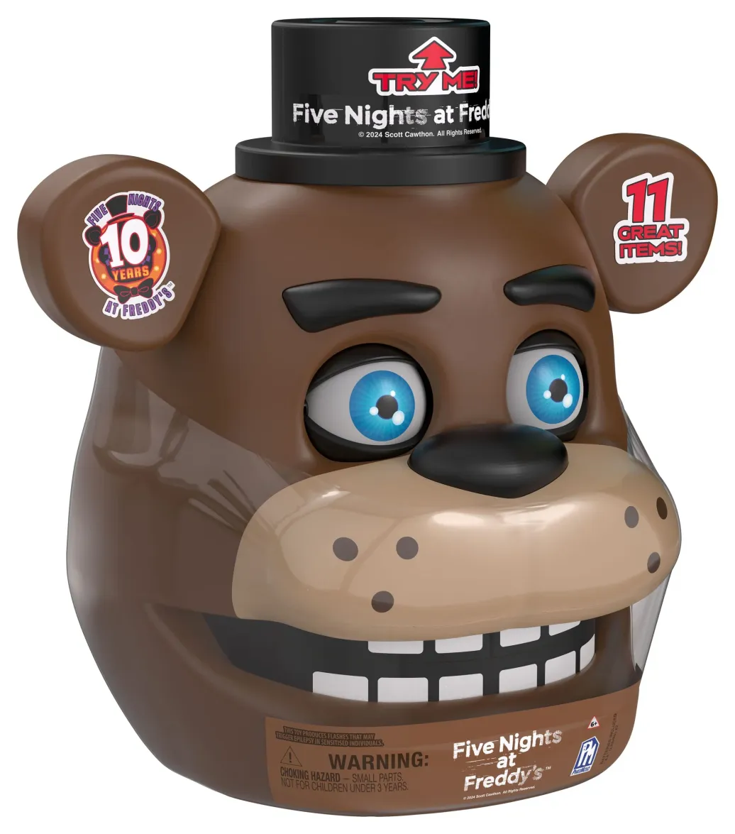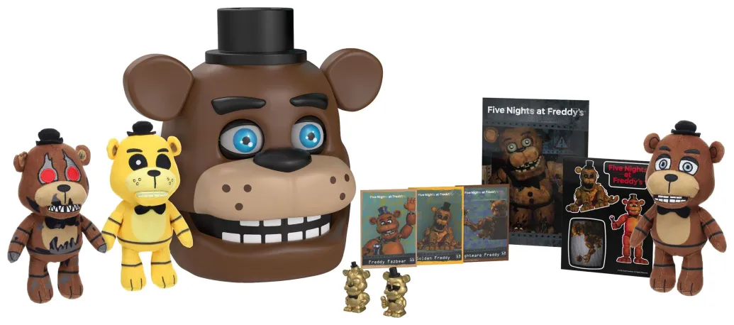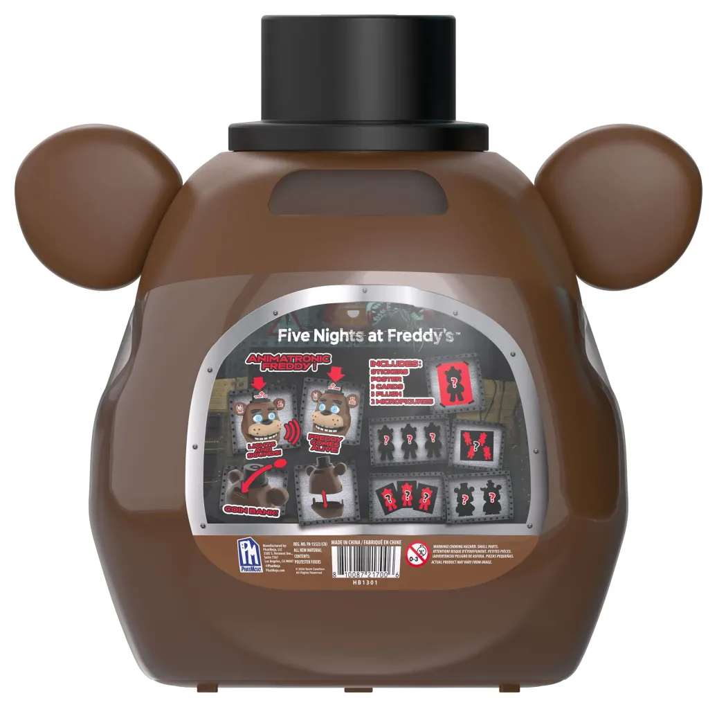 Mit dem Freddy Alive Bundle aus dem Erfolgsspiel Five Nights at Freddy's, erhältst du einen elektronischen Head bundle mit tollen light & sound features. Jedes Bundle enthält drei, ca. 17,5cm große FNAF-Plüschfiguren, zwei Microfiguren, Sammelkarten, Sticker Sheet sowie ein Sammler Poster. (Inkl. Try Me Funktion)