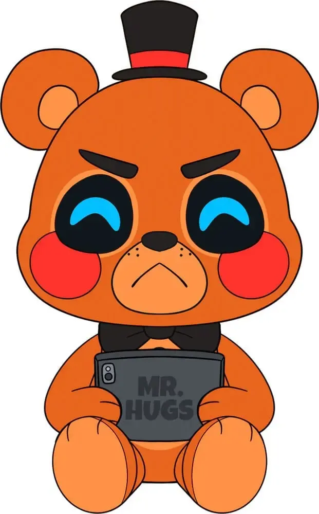 Toy Freddy macht eine Pause vom Spiel "Five Nights at Mr. Hugs" und kommt zu Youtooz! Er ist 22 cm groß, hat orangefarbene Ringe um seine schwarzen Augen und wütende blaue Pupillen, die über rosigen roten Wangen leuchten. Seine helle Schnauze trägt ein wütendes Stirnrunzeln, das nur durch ein vernichtendes "Game Over" erreicht wird. Er hält sein wertvollstes Spiel in beiden Händen und sein Zylinder ist mit einem einfachen roten Band verziert, das zu seiner schwarzen Fliege und den beiden Knöpfen auf seiner hellbraunen Brust passt. Dieser Plüsch ist bis zu den Nähten mit 100% PP-Baumwolle gefüllt und besteht aus einem normalen Minky-Material, absolut perfekt zum Kuscheln, wenn sie nicht gerade Spiele spielen!