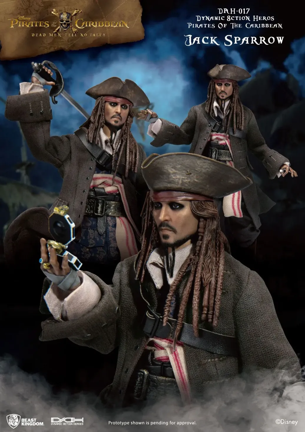 Zum Blockbuster Fluch der Karibik kommt diese großartige Jack Sparrow Actionfigur im Maßstab 1:9 aus der Dynamic 8ction Heroes Serie von Beast Kingdom Toys. Sie ist ca. 20 cm groß und wird mit weiteren Austausch- und Zubehörteilen in einer bedruckten Box geliefert.