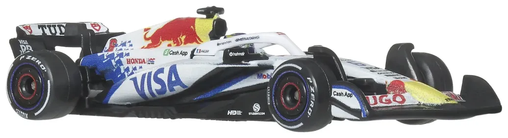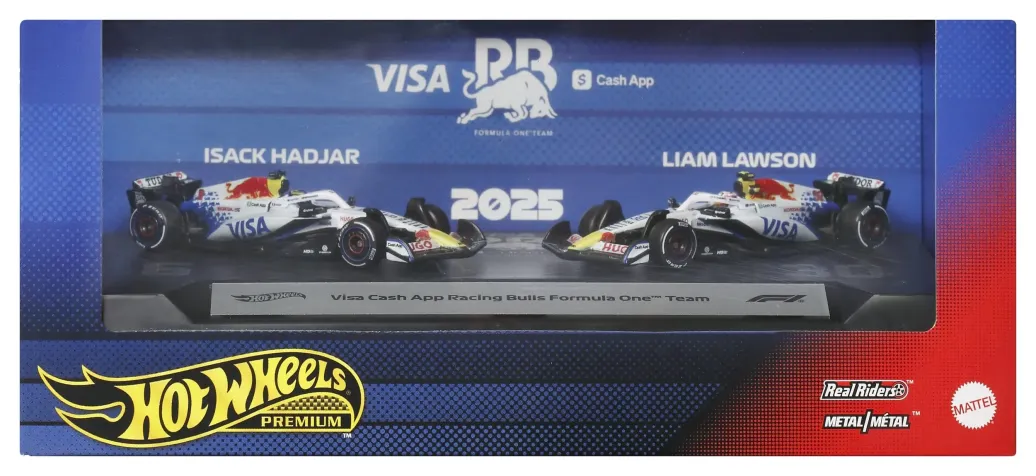Mit diesem Hot Wheels Premium Visa Cash App Racing Bulls F1-Team 2er-Pack schaltet jede Hot Wheels Sammlung in den Turbogang. Das Set enthält Die-Cast-Rennautos im Maßstab 1:64, die von den Modellen inspiriert sind, die Liam Lawson und Isack Hadjar fahren. Jedes Auto verfügt über authentische Lackierungen mit realitätsnahen Frontflügeln und Seitenkästen sowie detaillierten Fahrerhelmen. Die Karosserie und das Fahrwerk aus Metall sowie die Real-Riders-Reifen unterstreichen die hochwertige Verarbeitung der Autos. Mit der speziellen Verpackung und dem individuellen Ausstellungssockel punkten beide Fahrer. Abweichungen in Farbe und Gestaltung vorbehalten.