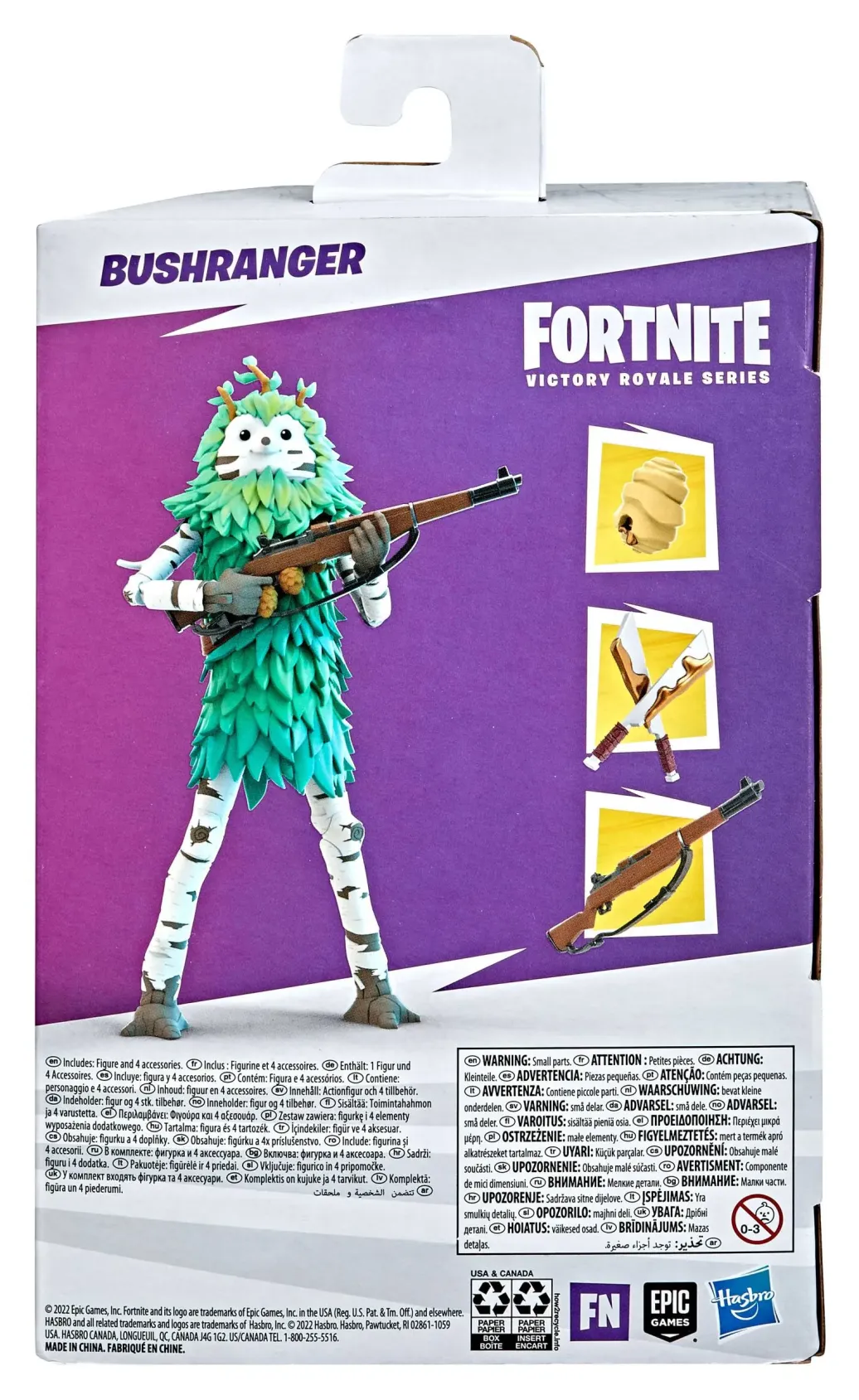Bushranger (Buschranger) stürzt aus dem Schlachtenbus herab und gleitet in die Victory Royale Series. Diese 15 cm große Action-Figur zeigt das berühmte Outfit mit einem zum Spiel passenden Dekor und Details. Sie kommt mit 2 Honigklingen Erntewerkzeugen und einem Rücken-Accessoire. Ebenfalls enthalten ist eine Waffe. Dank mehr als 20 Bewegungspunkten kann die Bushranger Figur für einen epischen Kampf in Szene gesetzt oder für ein Dance Battle positioniert werden.