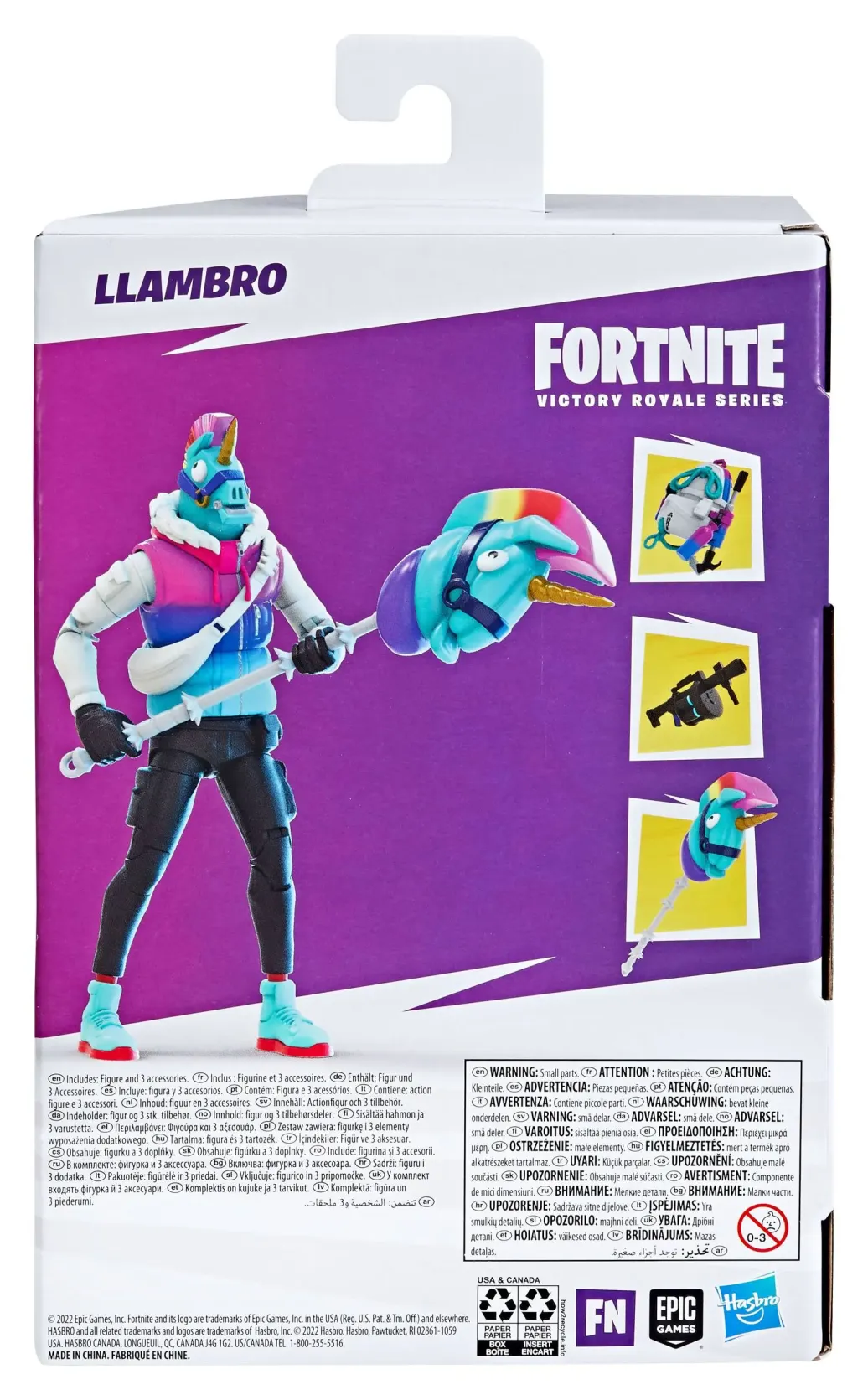 Llambro (Lamabro) stürzt aus dem Schlachtenbus herab und gleitet in die Victory Royale Series. Diese 15 cm große Action-Figur zeigt das berühmte Outfit mit einem zum Spiel passenden Dekor und Details. Sie kommt mit einem Knuffhornkeule-Erntewerkzeug, einem Hoher-Norden-Rücken-Accessoire und einer Waffe. Dank mehr als 20 Bewegungspunkten kann die Llambro Figur für einen epischen Kampf in Szene gesetzt oder für ein Dance Battle positioniert werden.