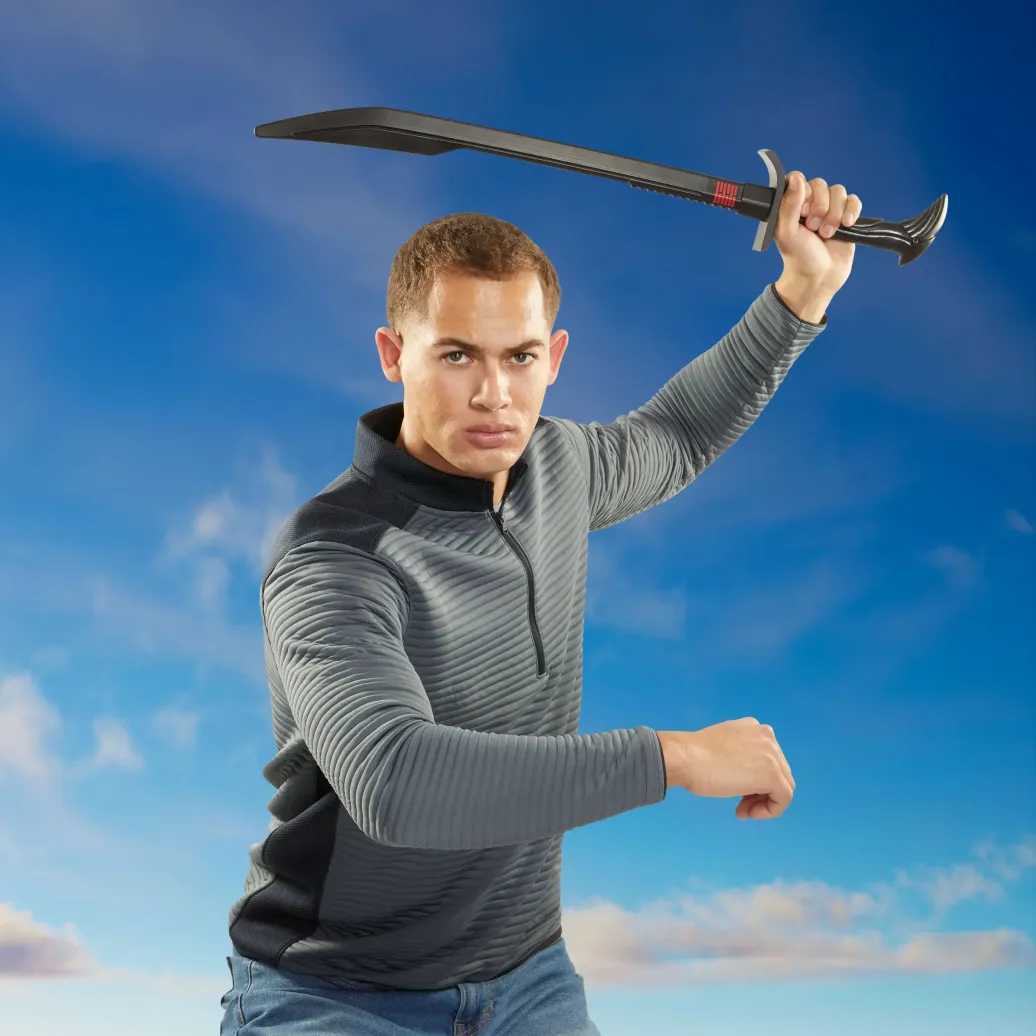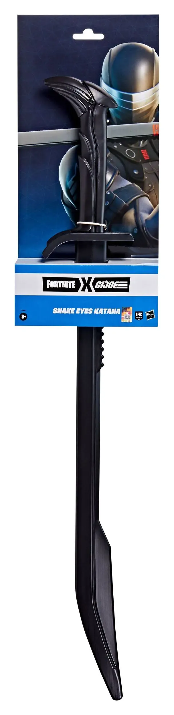 Dieses Premium G.I. Joe Collab Snake Eyes Katana Rollenspielzeug wurde dem Snake Eyes Katana Erntewerkzeug aus dem Fortnite Videospiel nachempfunden. Das 81 cm lange Rollenspielschwert präsentiert sich im Design zum Spiel und mit Premium-Details wie dem G.I. Joe Arashikage Clan Logo und einer gebürsteten Stahltextur am Griff mit Verwitterungsdetails. Fans sind eingeladen, mit diesem Spielzeug in die Rolle von Snake Eyes zu schlüpfen.