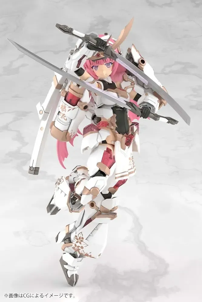 Wir präsentieren den neuesten Zuwachs der brandneuen GRANDE SCALE-Serie: MAGATSUKI KIKKA! Magatsuki ist nun im Maßstab 1:6 (ca. 25 cm) erhältlich! Auch diese Version wurde von ToMo und E-ji Komatsu entworfen. Die originalen, detailreichen CAD-Daten von Kotobukiya wurden auf den neuen GRANDE SCALE-Maßstab vergrößert. Von der einfachen Montage und Bemalung bis hin zu den vielfältigen Spiel- und Posenmöglichkeiten vereint dieser Bausatz alle großartigen Eigenschaften eines größeren Modells. Modellspezifikationen: - Enthält die im KIKKA-Design verwendeten goldenen Abziehbilder. - Dank der vergrößerten Abmessungen wurde die Farbgebung originalgetreuer nachgebildet. - Enthält drei per Tampondruck aufgebrachte Gesichtsausdrücke (lächelnd, verletzt und mit geschlossenen Augen). - Die charakteristische, transparente Rüstung dieses Modells wurde mit Klarsichtteilen nachgebildet, unter denen Gravuren eingearbeitet sind. - Die 5-mm-Gelenke ermöglichen es, dieses Modell sowohl in der Standardform als auch in einem speziellen „Kunoichi-Modus“ zusammenzubauen. - Enthält zwei Sätze Spezialwaffen: Tenkai (Langschwerter) und Satsuga (Kurzschwerter). - Die Waffen können ohne Austausch von Teilen in die Scheide gesteckt und daraus gezogen werden. - Es sind Gelenkteile enthalten, um das Langschwert Tenkai an der Ferse der Figur zu befestigen. - Die Kopfbedeckung kann als große Version oder als zwei kleine Versionen zusammengebaut werden. - Optionale Gelenkteile für die Oberschenkel sind ebenfalls enthalten. - Hüftgelenkteile sind ebenfalls enthalten. - Durch die ausklappbaren Brust- und Schultergelenke ist ein großer Bewegungsspielraum möglich. - Das Schiebegelenk an der Hüfte und die ausklappbaren Gelenke an den Oberschenkeln ermöglichen ebenfalls einen großen Bewegungsspielraum. - Die Handteile sind mit einem Kugelgelenk befestigt, was eine Vielzahl ausdrucksstarker Posen ermöglicht. - Der Bausatz enthält fünf Sätze PVC-Handteile. Die Hände, einschließlich der Gelenke, sind mit bestehenden Modellen der Frame Arms Girl GRANDE SCALE-Serie kompatibel. - Der Bausatz enthält größere PVC-Hände im Maßstab 1:6 (Standard-Puppengröße) zum Halten von Waffen wie Pistolen, Schwertern usw. - Enthält Abziehbilder für die Augen und andere Teile. - Mit Gelenkadaptern zum Umrüsten von 5-mm- auf 3-mm-Anschlüsse. Kompatibel mit Zubehör aus der M.S.G.- und anderen Modellbausatzserien von Kotobukiya. ? Das kurze Haar, der Pony ohne Kopfbedeckung und die Wurfsterne aus dem KIKKA-Bausatz im Standardmaßstab sind nicht enthalten. Was ist GRANDE SCALE?: GRANDE SCALE ist eine brandneue Modellbausatz-Serie, die die ursprünglichen Kotobukiya-CAD-Daten der Modelle auf eine größere, noch eindrucksvollere Größe skaliert. Der Bausatz vereint alle großartigen Eigenschaften eines größeren Modells, von einfacher Montage und Bemalung bis hin zu Spielvielfalt und Beweglichkeit. Was ist Frame Arms Girl?: Frame Arms Girl ist ein Spin-off der ursprünglichen Modellbausatzserie „Frame Arms“ von Kotobukiya, bei der für jeden Mecha eine Figur im Bishoujo-Stil entworfen wird. Die Bausätze enthalten mehrfarbige Teile und Gesichtsmasken, die im Tampondruckverfahren vorbedruckt sind, sodass sie einfach zusammengebaut werden können und keine Bemalung erforderlich ist. Ausgestattet mit den charakteristischen 3-mm-Gelenken und PVC-Händen von Frame Arms lassen sich Frame Arms Girl-Modelle mit einer Vielzahl von Teilen aus Serien wie M.S.G (Modeling Support Goods), Frame Arms und anderen kombinieren! Die Köpfe, Arme und Beine der neuesten Modelle der Serie sind vollständig miteinander kompatibel, sodass Nutzer ihre ganz eigene, einzigartige Frame Arms Girl kreieren können!