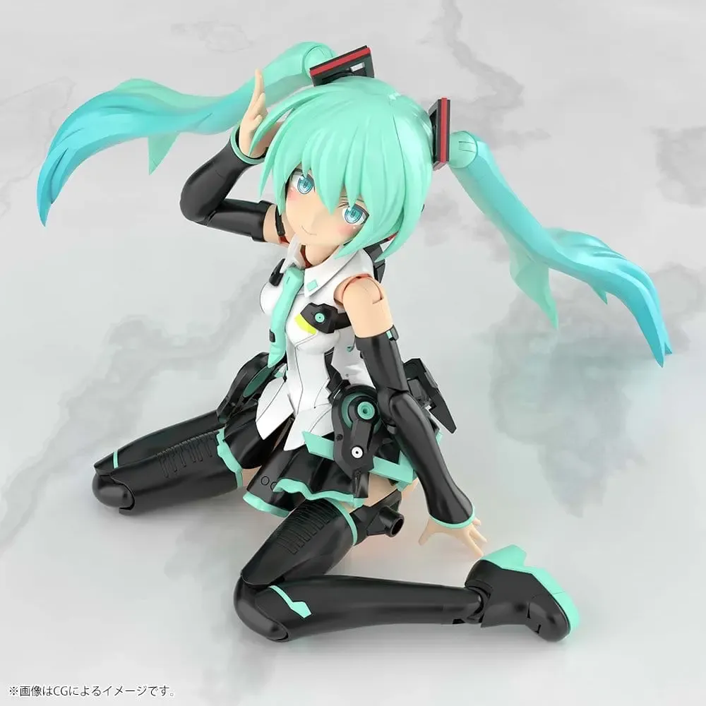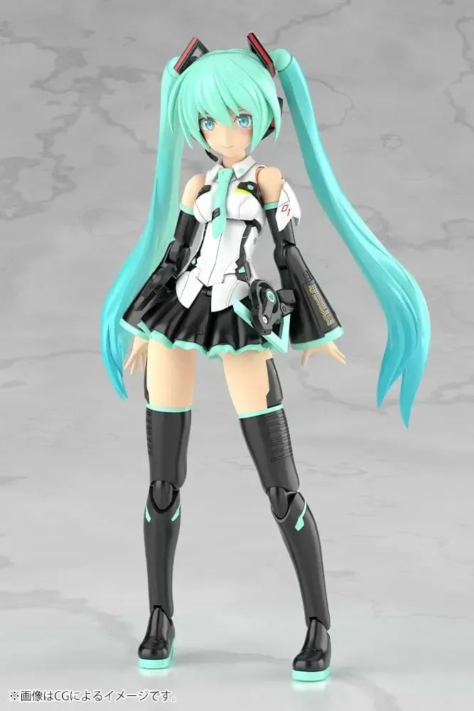 Wir präsentieren den neuesten Zuwachs der brandneuen GRANDE SCALE-Serie: Frame Music Girl Hatsune Miku! Frame Music Girl Hatsune Miku ist jetzt im Maßstab 1:6 (ca. 25 cm) erhältlich! Auch diese Version wurde von Humikane Shimada und Takayuki Yanase entworfen. Die originalen, detailreichen CAD-Daten von Kotobukiya wurden auf den neuen GRANDE SCALE-Maßstab vergrößert. Von der einfachen Montage und Bemalung bis hin zu den vielfältigen Spiel- und Posenmöglichkeiten vereint dieser Bausatz alle großartigen Eigenschaften eines größeren Modells. Modellspezifikationen: - Dank der vergrößerten Abmessungen wurde die Farbgebung originalgetreuer nachgebildet. - Enthält drei im Tampondruckverfahren bedruckte Gesichtsausdrücke (Singen, Blick nach links und Blick nach rechts). - Die Gesichtsteile sind alle vorbemalt, sodass Nutzer ein Modell nachbilden können, das dem Originalentwurf treu bleibt. - Enthält ein Mikrofon und einen Mikrofonständer. - Zusätzlich zu den Standard-Armteilen sind Armteile ohne Ärmel enthalten. - Abziehbilder für die Augen und andere Teile sind enthalten. - Der Rock ist beweglich, was einen größeren Bewegungsspielraum für die Beine ermöglicht. - Der Modellbausatz enthält fünf Sätze PVC-Handteile. Die Hände, einschließlich der Gelenke, sind mit bestehenden Modellen der Frame Arms Girl GRANDE SCALE-Serie kompatibel. - Der Bausatz enthält größere PVC-Hände im Maßstab 1:6 (Standard-Puppengröße) zum Halten von Waffen wie Pistolen, Schwertern usw. - Im Lieferumfang sind Gelenkadapter enthalten, um 5-mm-Stifte auf 3 mm umzurüsten. Kompatibel mit Zubehör aus der M.S.G.- und anderen Modellbausatzserien von Kotobukiya.