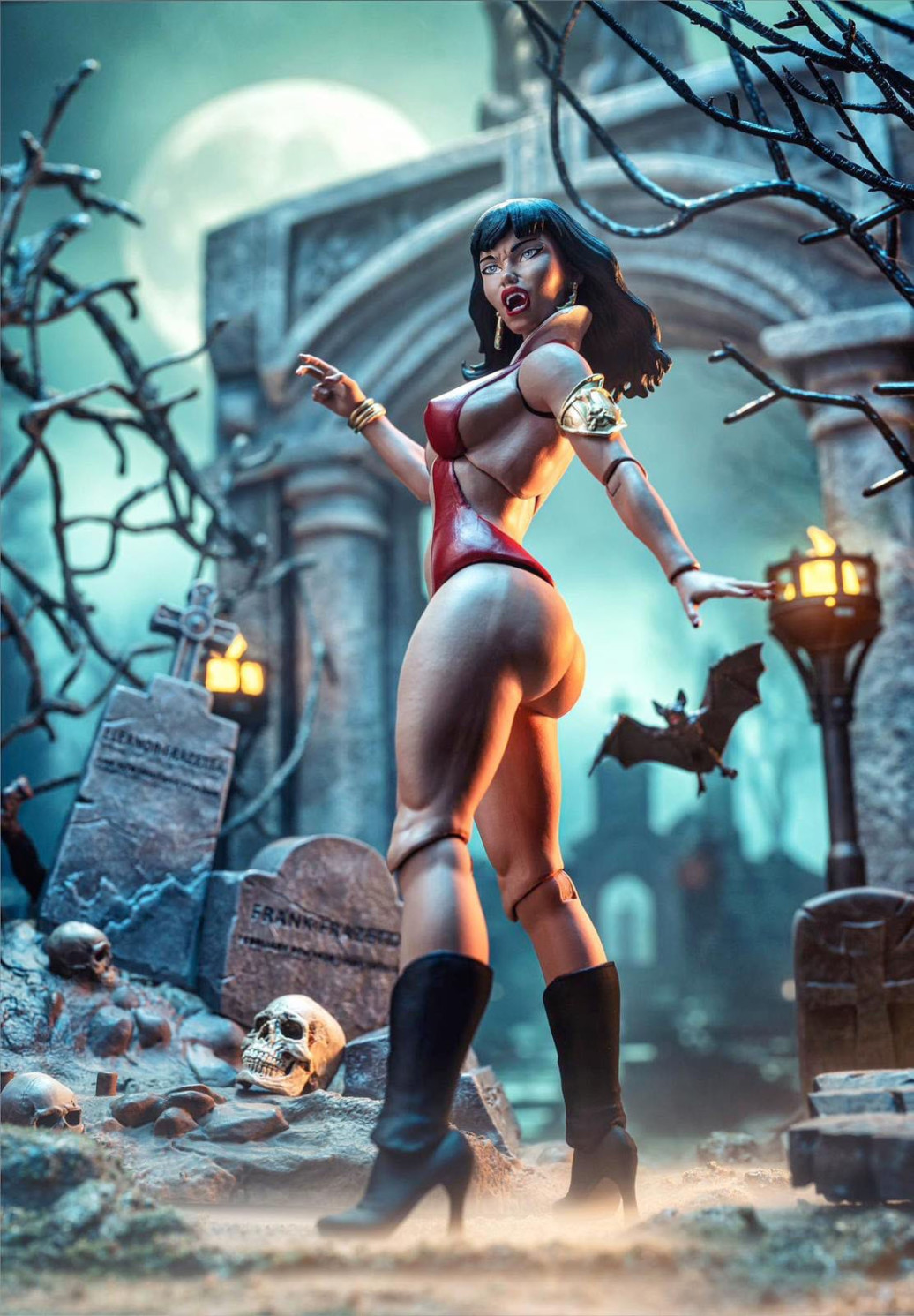 Aus der Reihe "Icon Collectibles™ by Frazetta Girls" kommt diese detailreiche Actionfigur im Maßstab 1/12. Sie ist ca. 16 cm groß und wird mit weiterem Zubehör und austauschbaren Teilen in einer bedruckten Box geliefert.