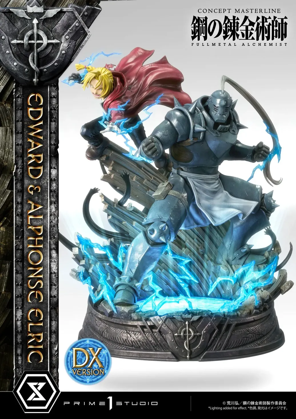 Zum Manga "Fullmetal Alchemist" kommt diese fantastische Statue von Edward & Alphonse Elric im Maßstab 1/6. Sie ist ca. 56 x 41 x 41 cm groß und wurde aus hochwertigem Polystone gefertigt. Sie verfügt über eine eingbaute LED Leuchtfunktion.