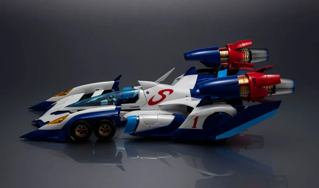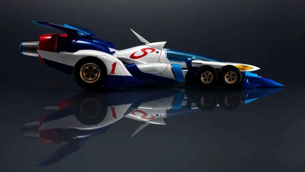 Aus MegaHouse' "Future GPX Cyber Formula"- Reihe kommt dieses Fahrzeug aus dem Anime "Mobile Suit Gundam". Es wurde aus PVC hergestellt und ist ca. 30 cm groß.