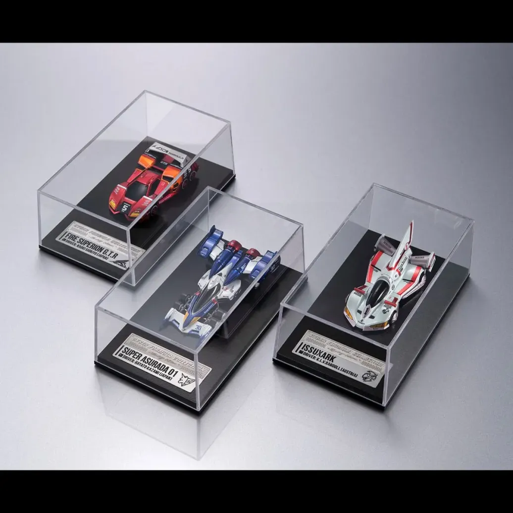 Aus MegaHouse' "Future GPX Cyber Formula"- Reihe kommt dieses 3er-Pack von Fahrzeugen. Sie wurden aus PVC hergestellt und ist ca. 14 cm groß.