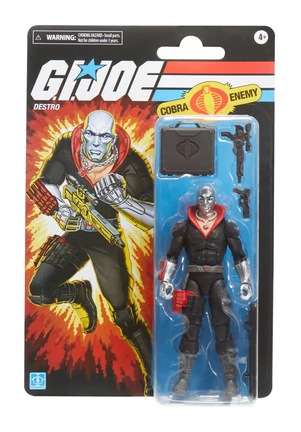 Diese Destro Figur ist bereit für die Action und verfügt über mehrere Bewegungspunkte. Sie kommt mit 5 zum Charakter passenden Accessoires. Dank der klassischen Gestaltung ist die Destro Packung aus der G.I. Joe Classified Series ein echtes Highlight im Regal.