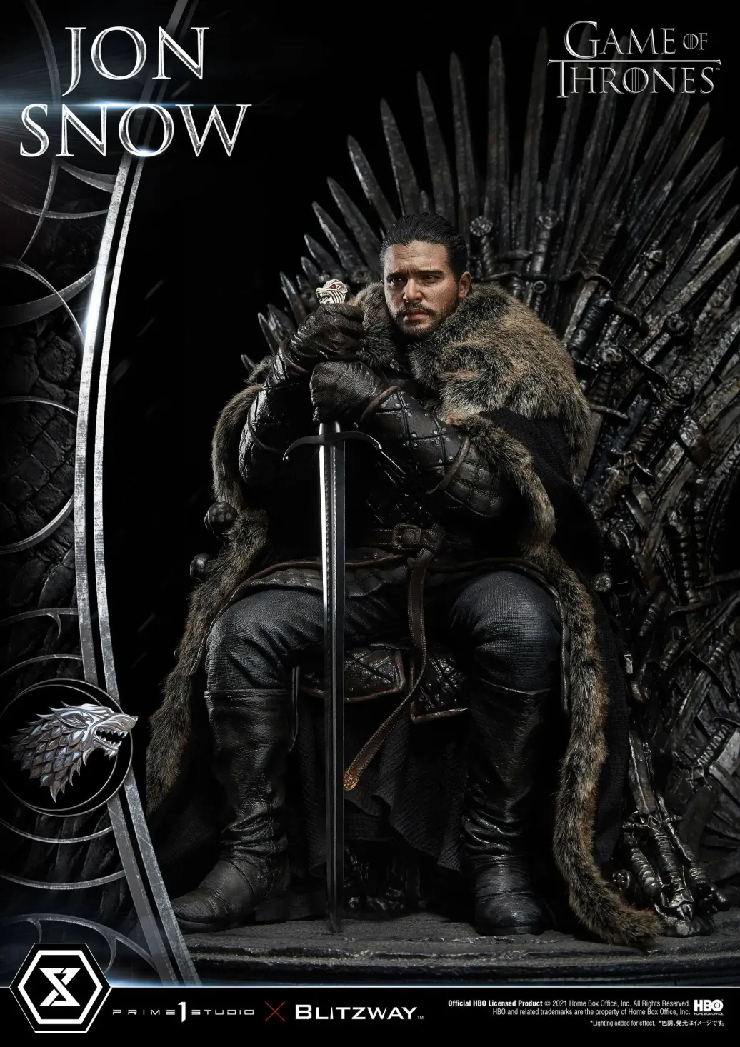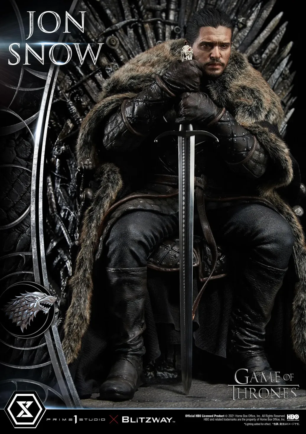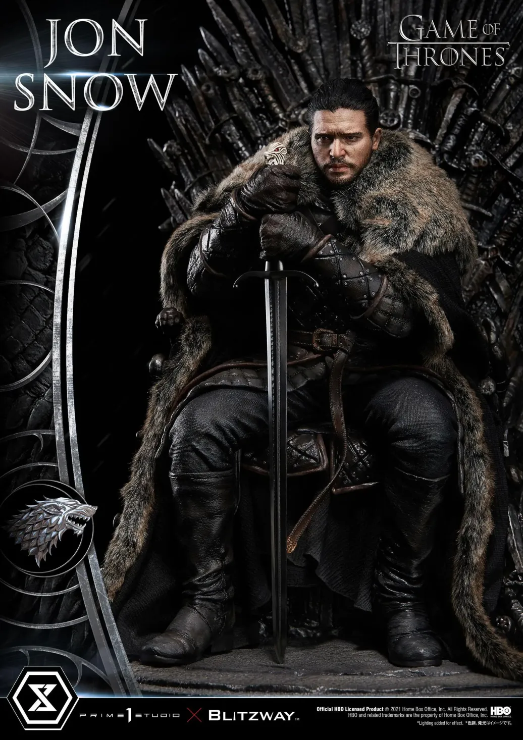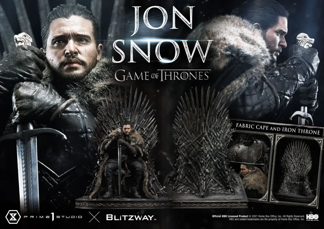 Prime 1 Studio und Blitzway präsentieren diese fantastische Statue von Jon Snow aus der mega erfolgreichen TV-Serie "Game of Thrones". Das im Maßstab 1/4 gehaltene Sammlerstück ist ca. 60 x 45 x 52 cm groß und wurde aus hochwertigem Polystone gefertigt.