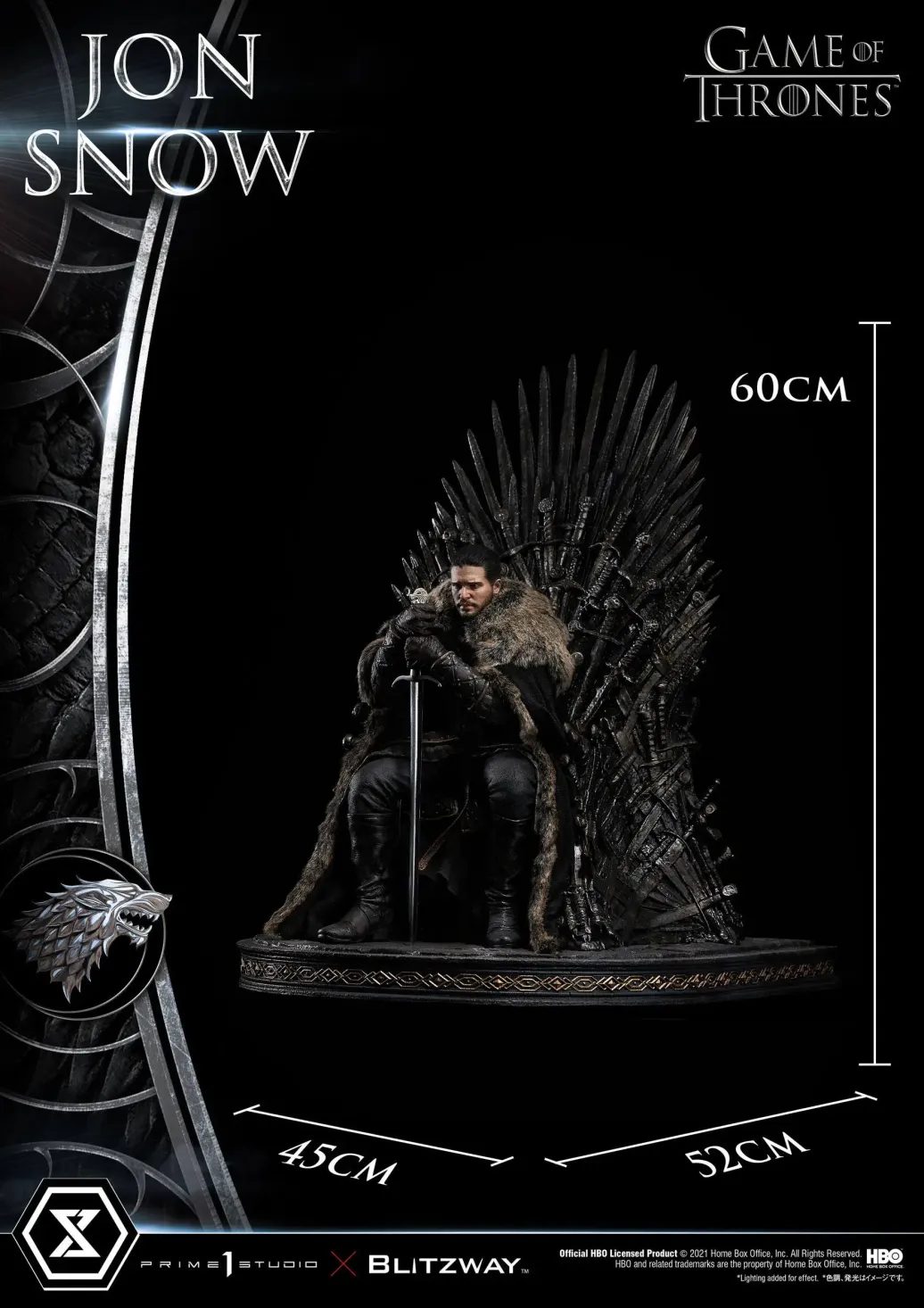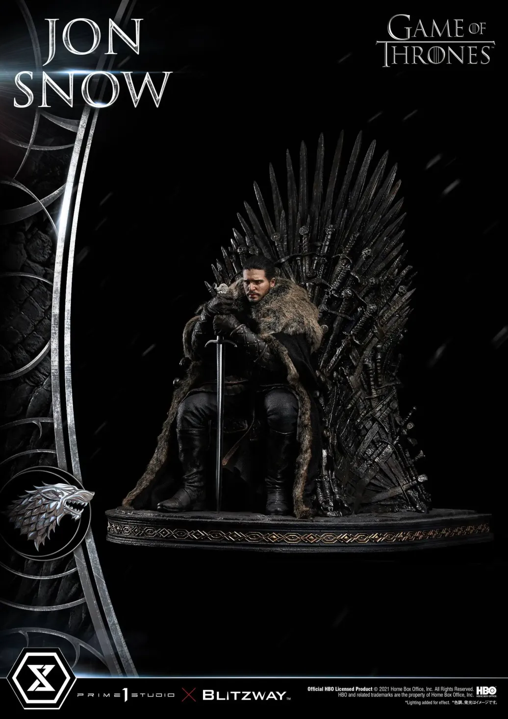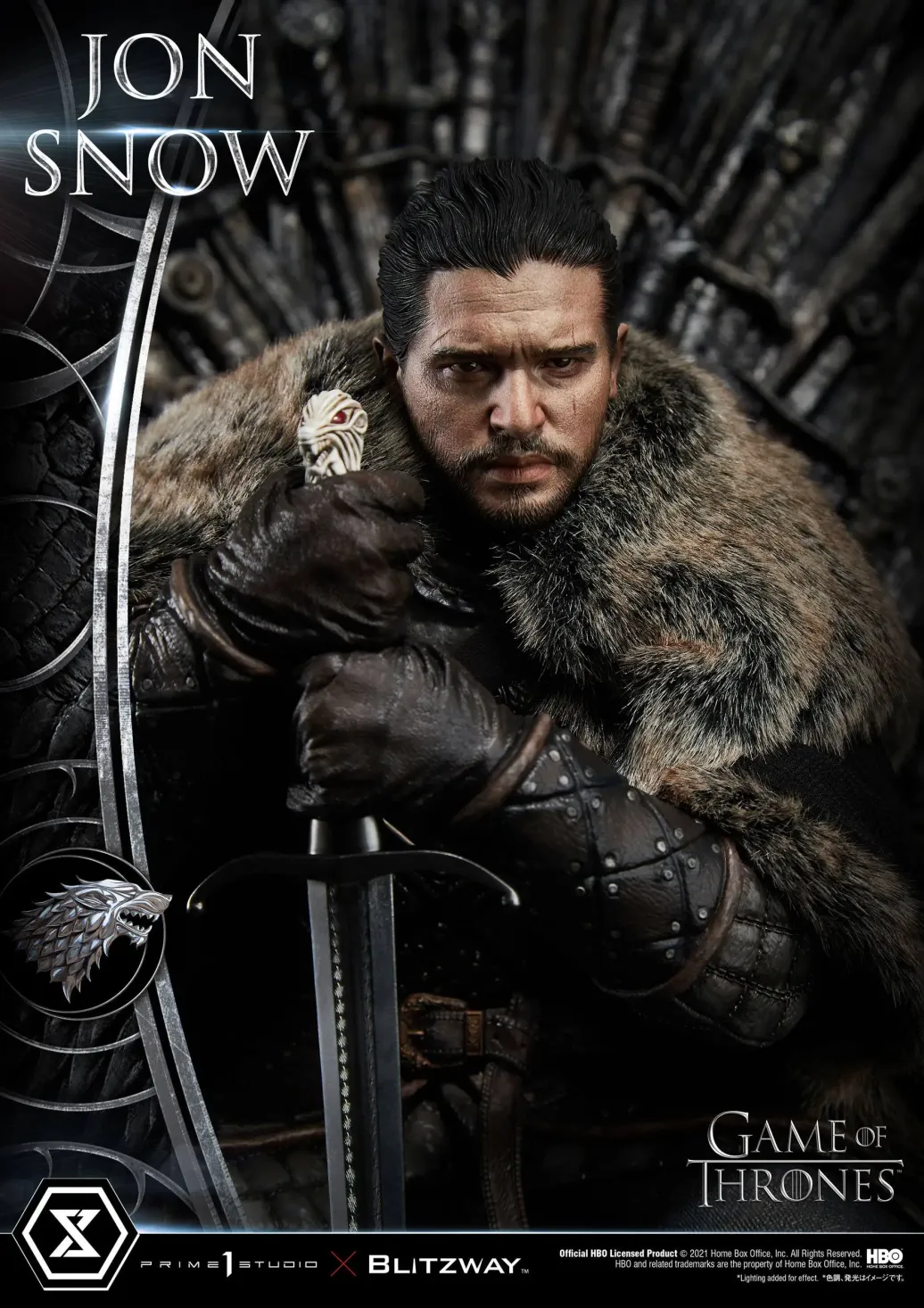 Prime 1 Studio und Blitzway präsentieren diese fantastische Statue von Jon Snow aus der mega erfolgreichen TV-Serie "Game of Thrones". Das im Maßstab 1/4 gehaltene Sammlerstück ist ca. 60 x 45 x 52 cm groß und wurde aus hochwertigem Polystone gefertigt.