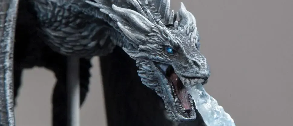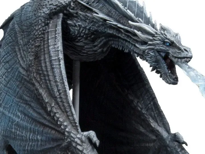 Zur TV Serie Game of Thrones kommt diese detailreiche, bewegliche Viserion Ice Dragon Actionfigur. Sie ist ca. 23 x 26 cm groß (mit einer Flügelspannweite über 42 cm) und wird inkl. Figurenständer in einer bedruckten Fensterbox geliefert.
