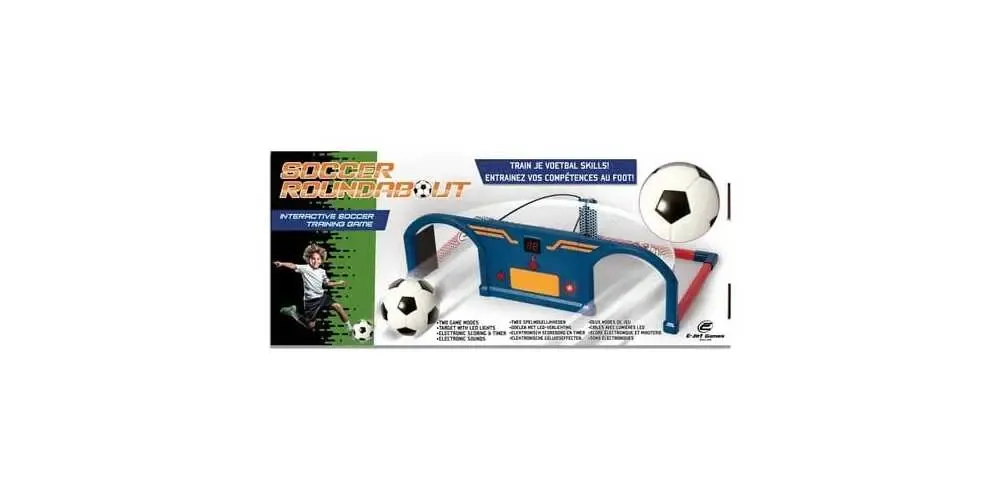 Dies ist das Soccer Roundabout von Gear2Play. Es ist ein großes Ziel, an dem du deine Passfähigkeiten üben kannst.